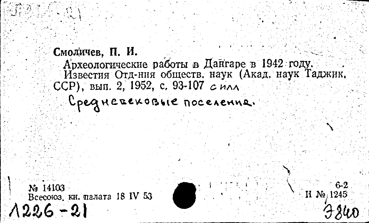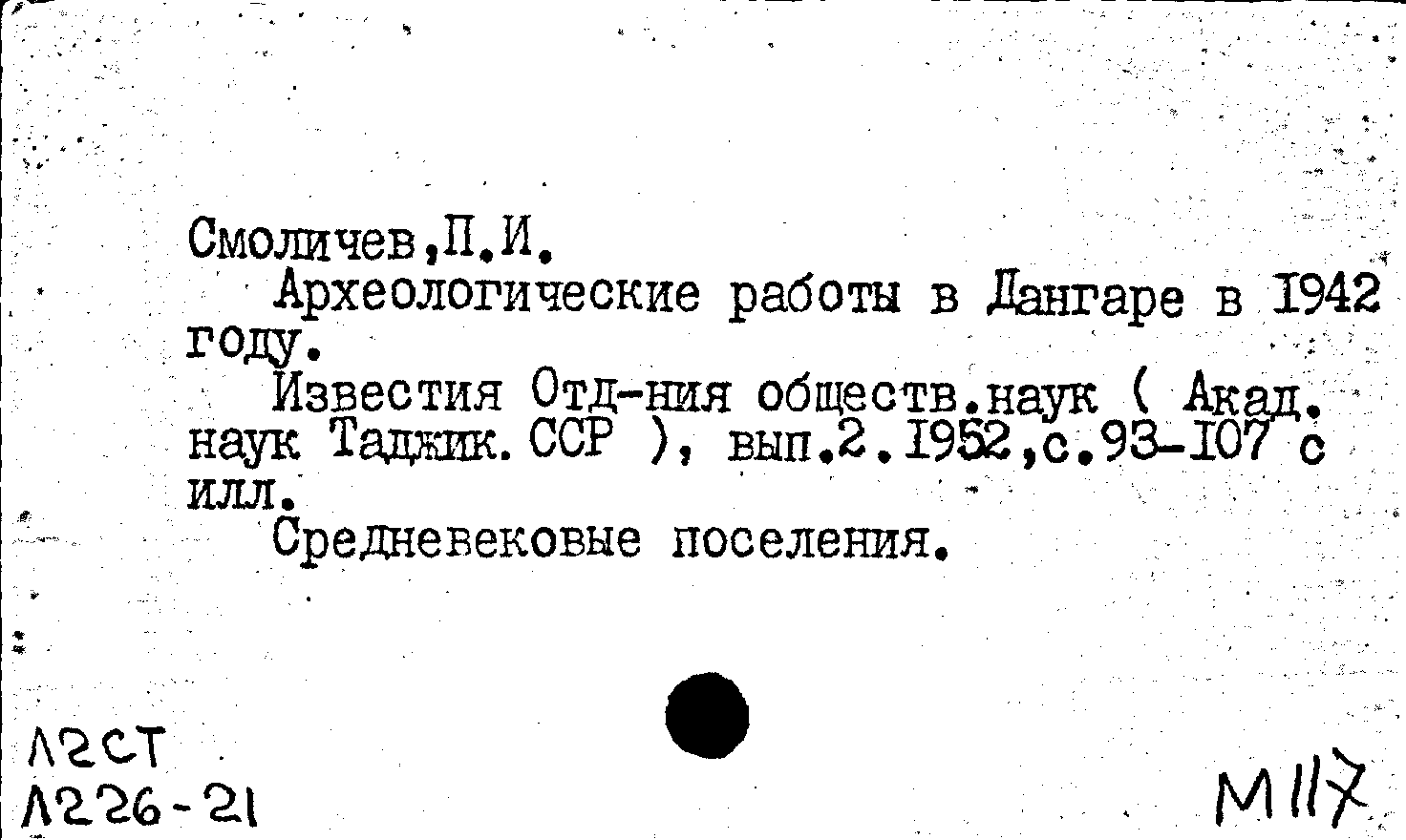 Книга (аналит. описание): Археологические работы в Дангаре в 1942 году