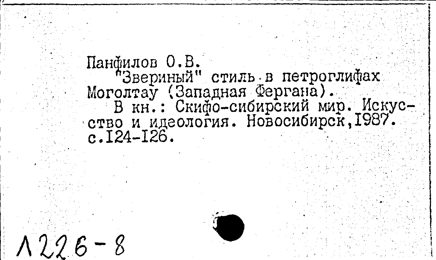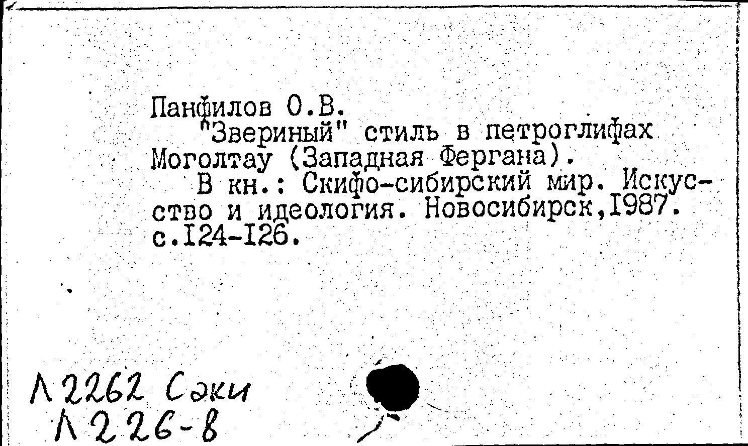 "Звериный" стиль в петроглифах Моголтау (Западная Фергана)