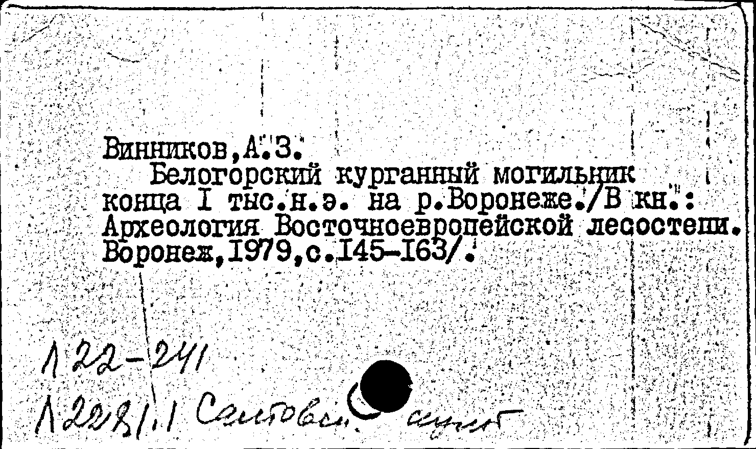 Книга (аналит. описание): Белогорский курганный могильник конца I тыс. н. э. на р. Воронеже