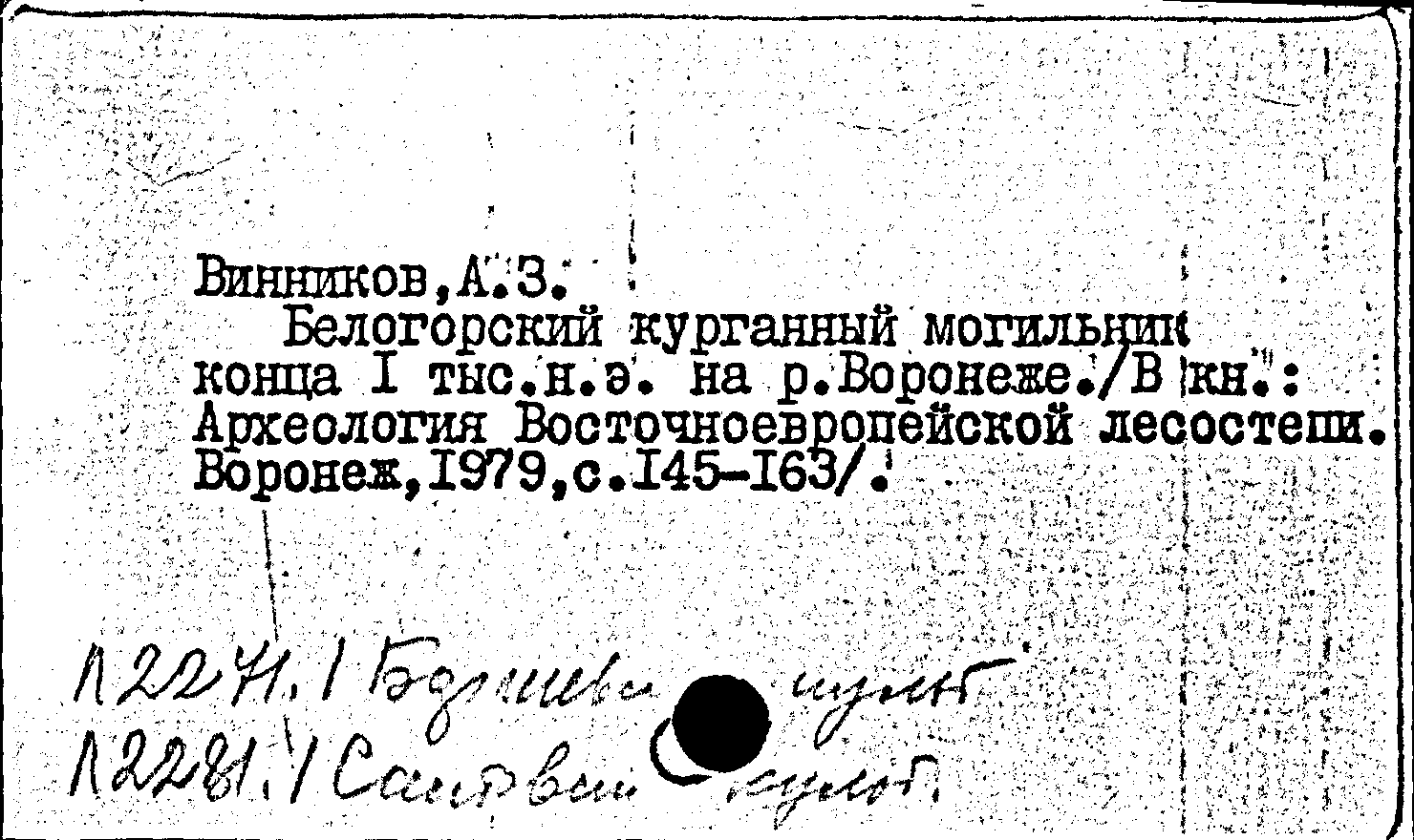 Белогорский курганный могильник конца I тыс. н. э. на р. Воронеже