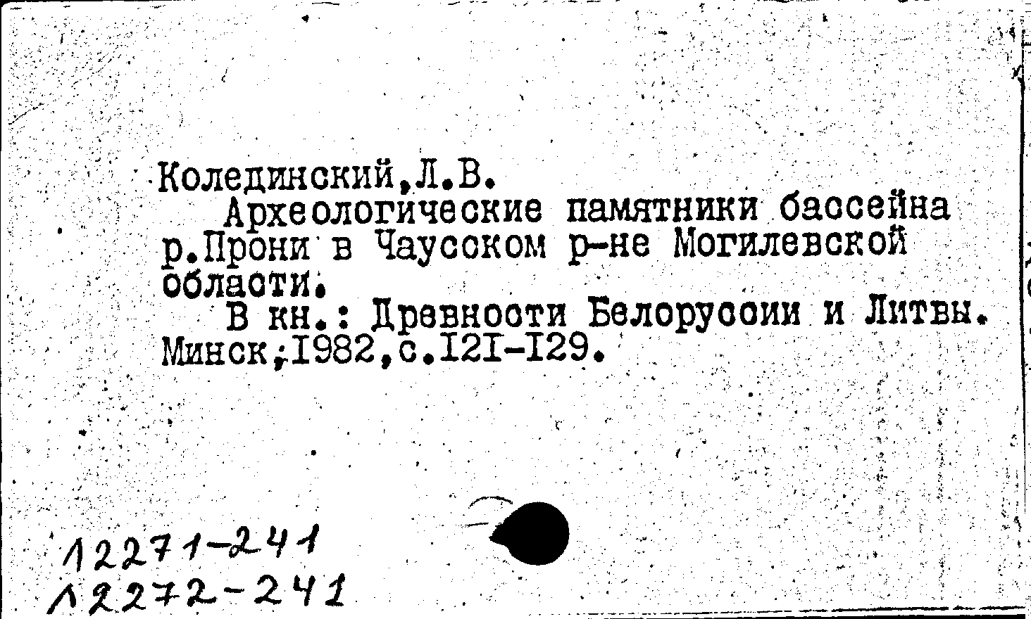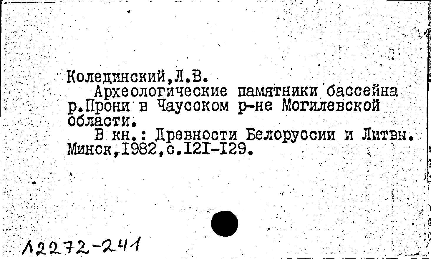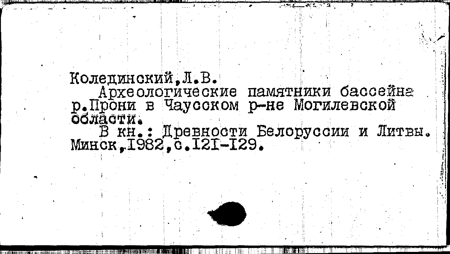 Археологические памятники бассейна р. Прони в Чаусском районе Могилевской области