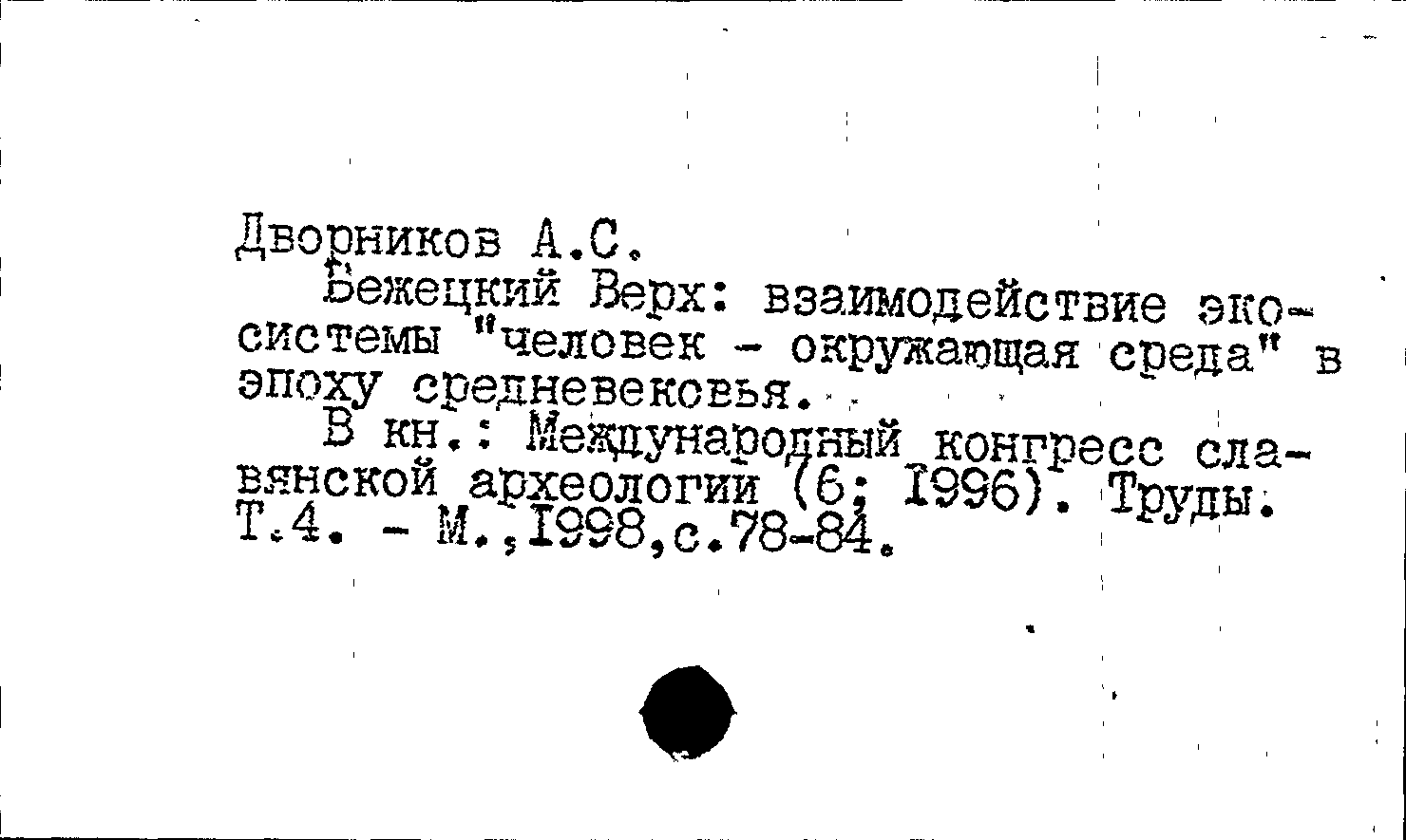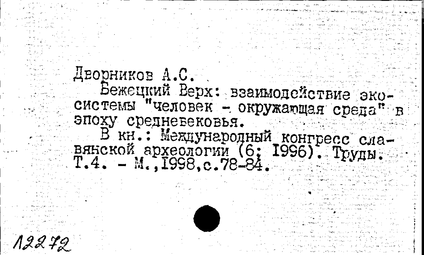 Бежецкий Верх: взаимодействие экосистемы "человек - окружающая среда" в эпоху средневековья