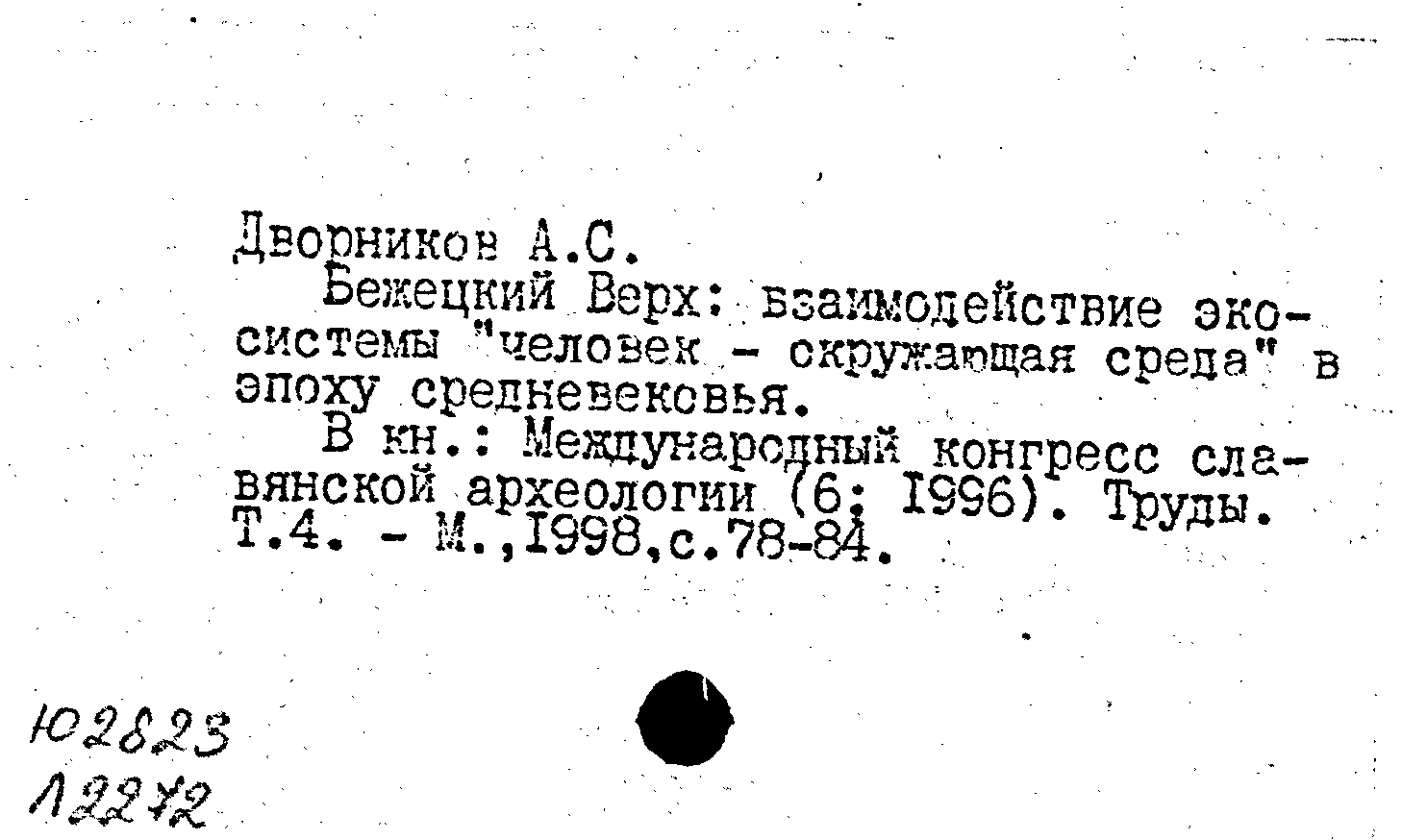 Книга (аналит. описание): Бежецкий Верх: взаимодействие экосистемы "человек - окружающая среда" в эпоху средневековья