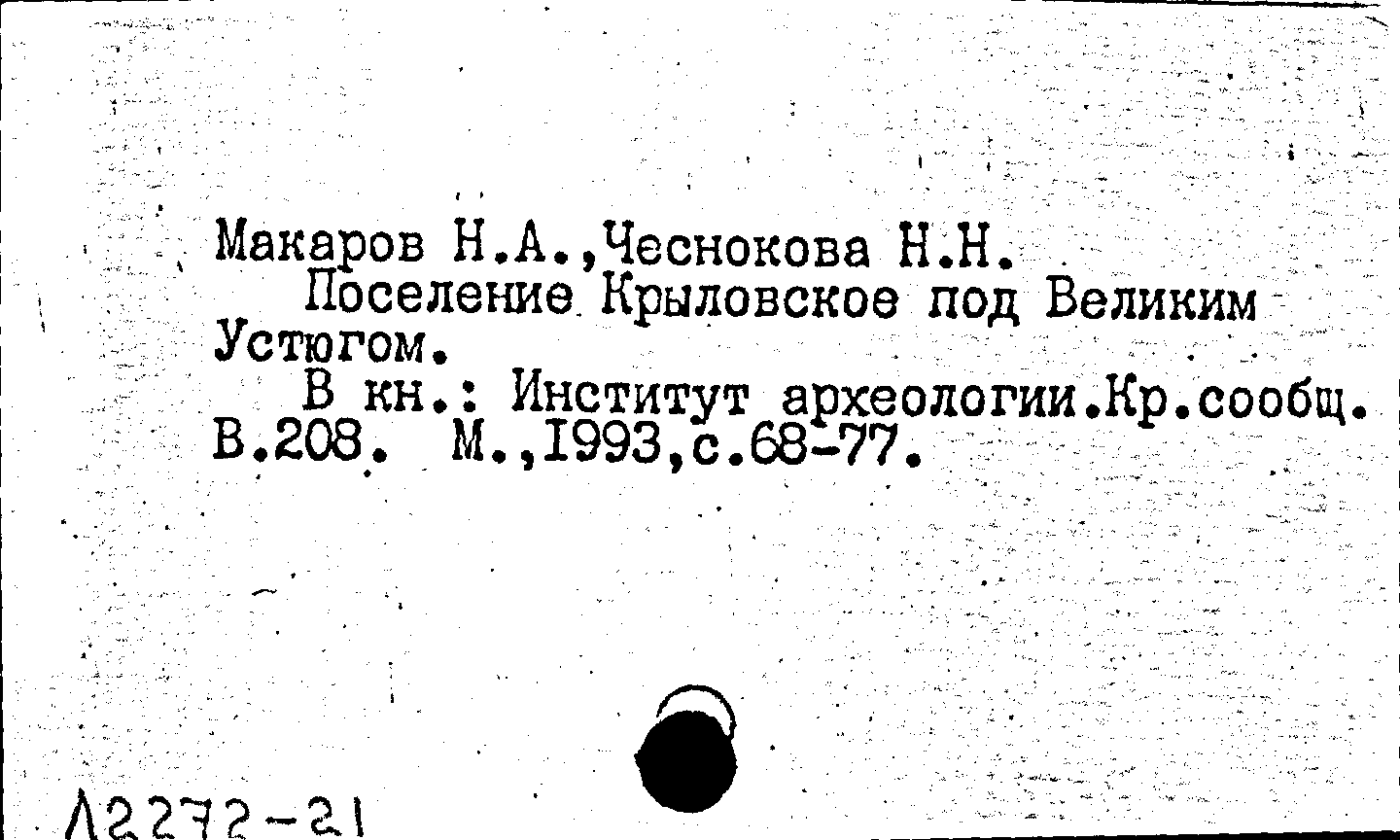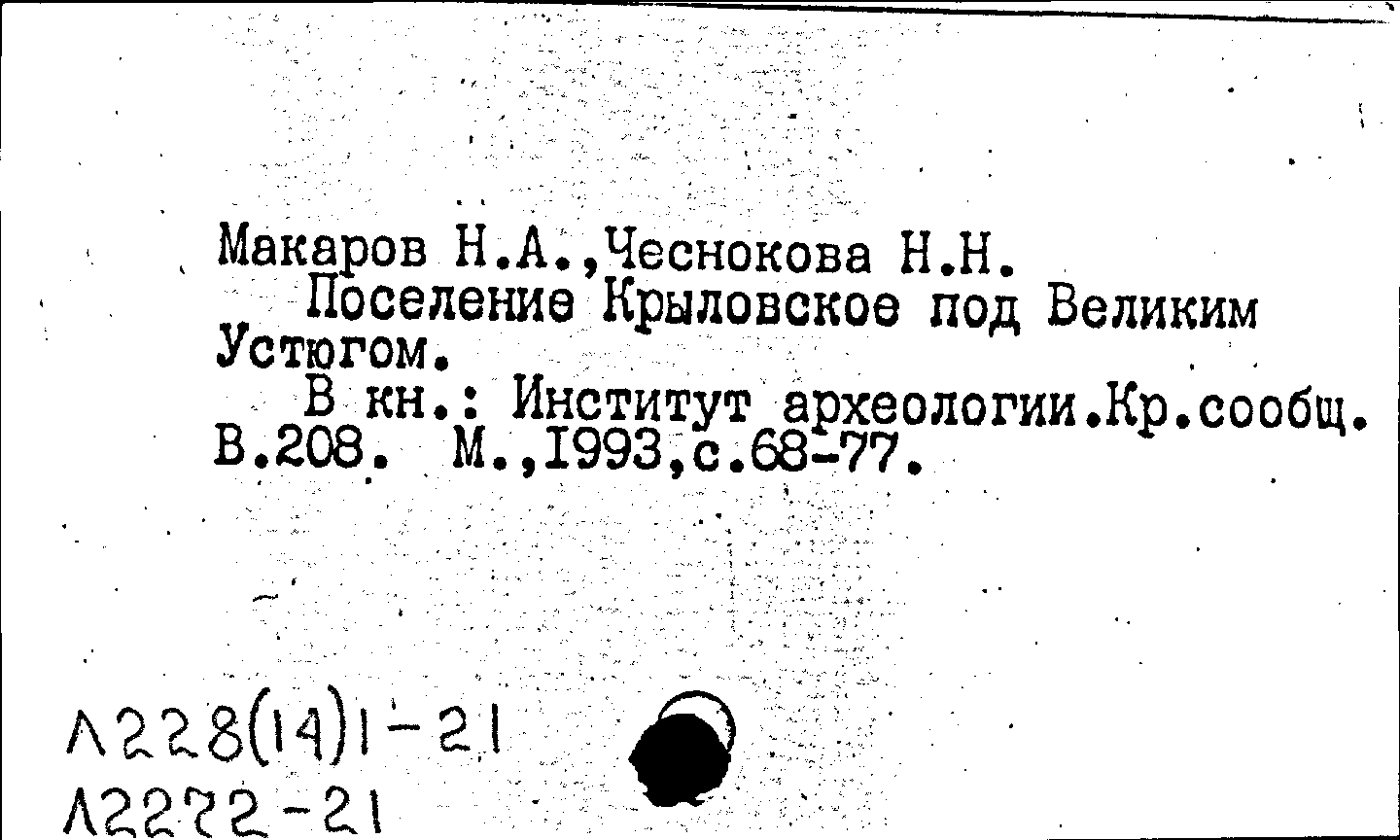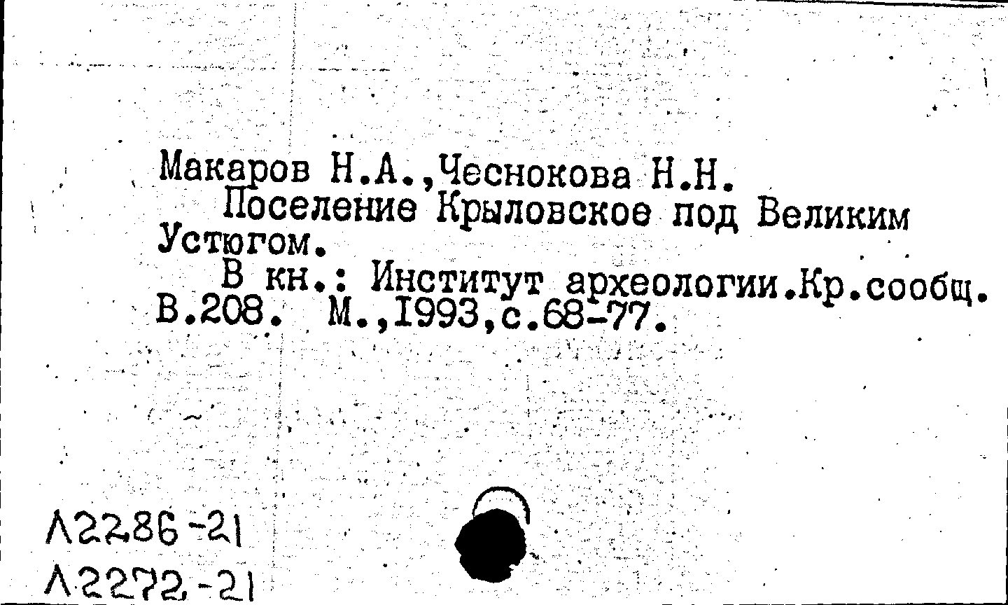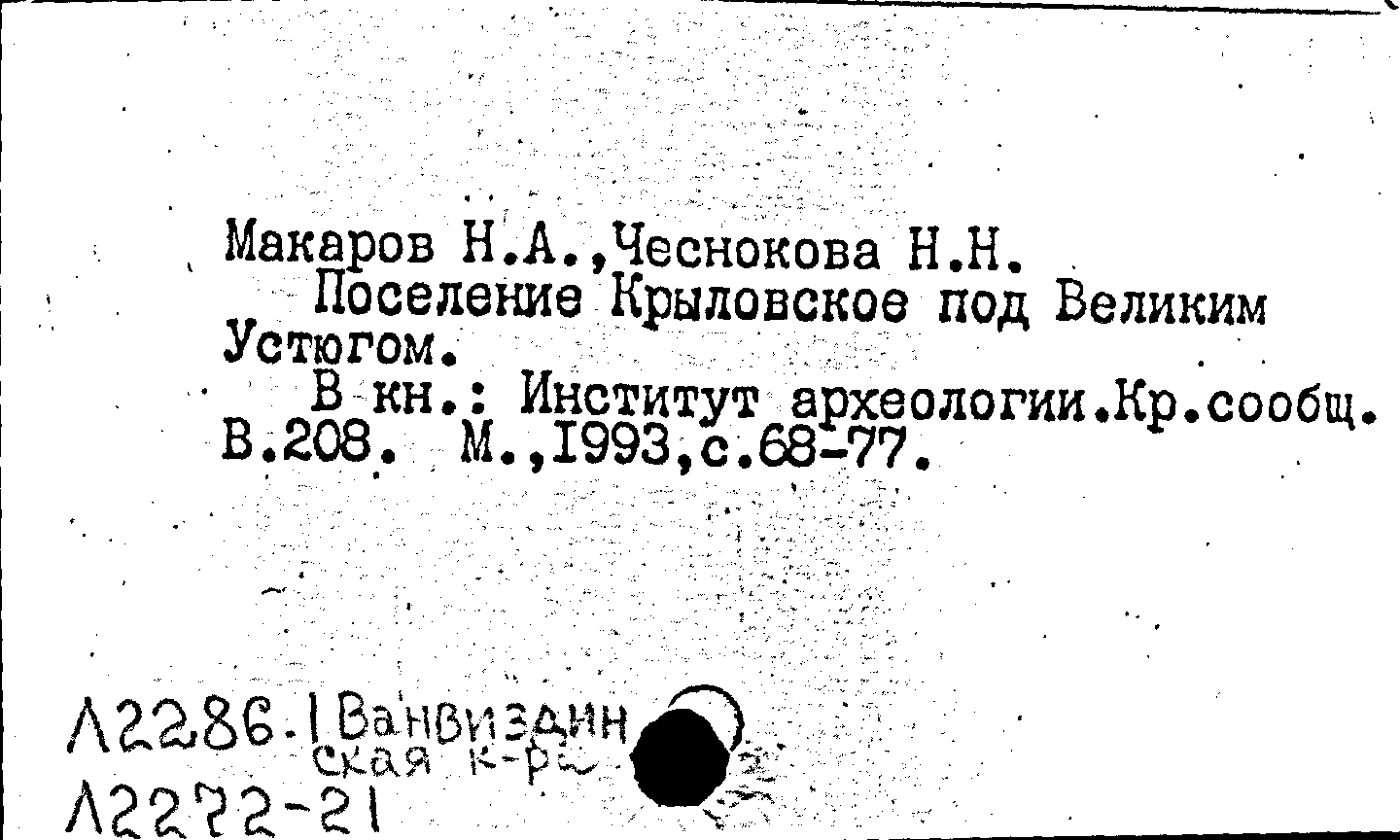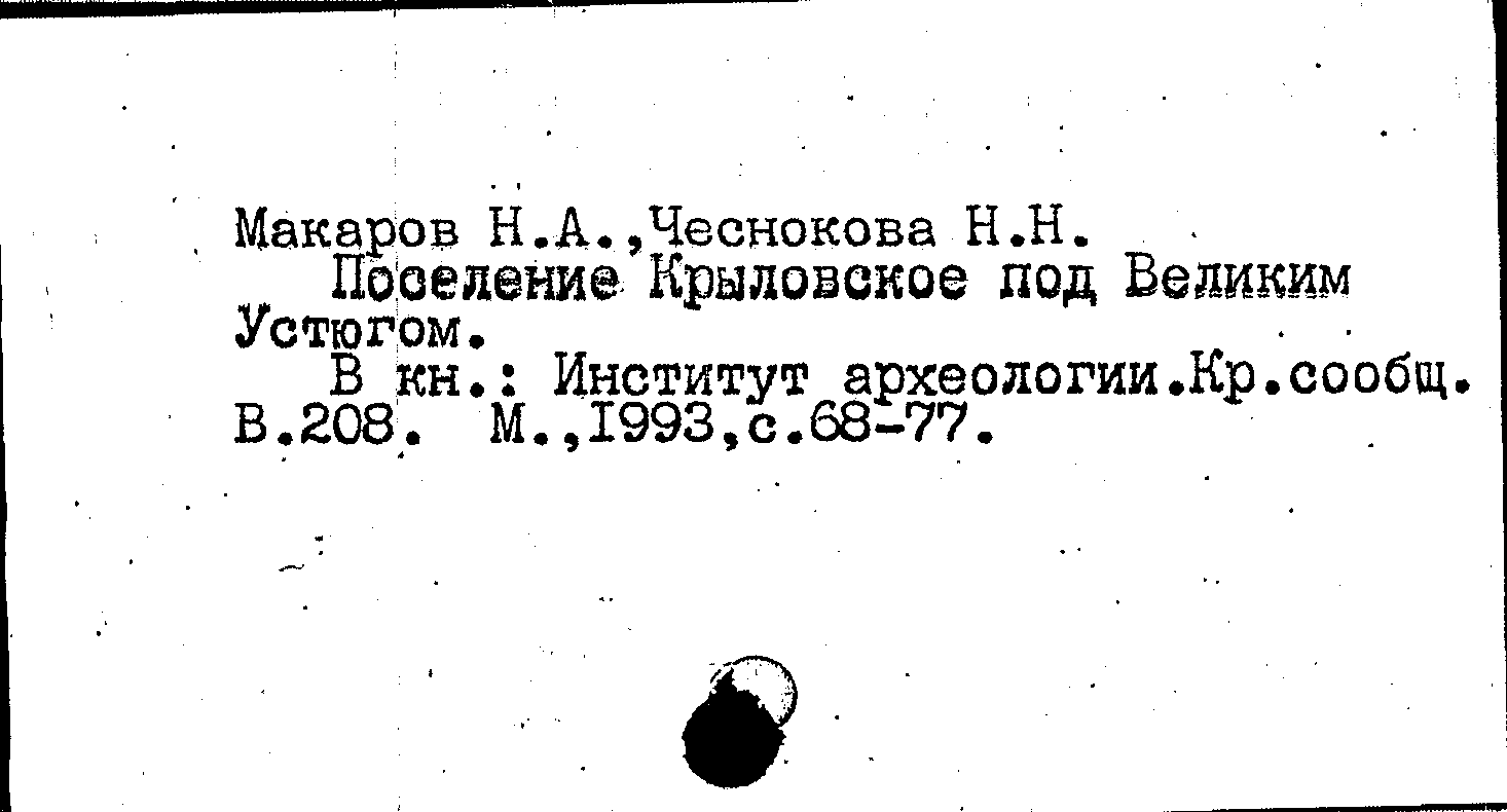 Книга (аналит. описание): Поселение Крыловское под Великим Устюгом