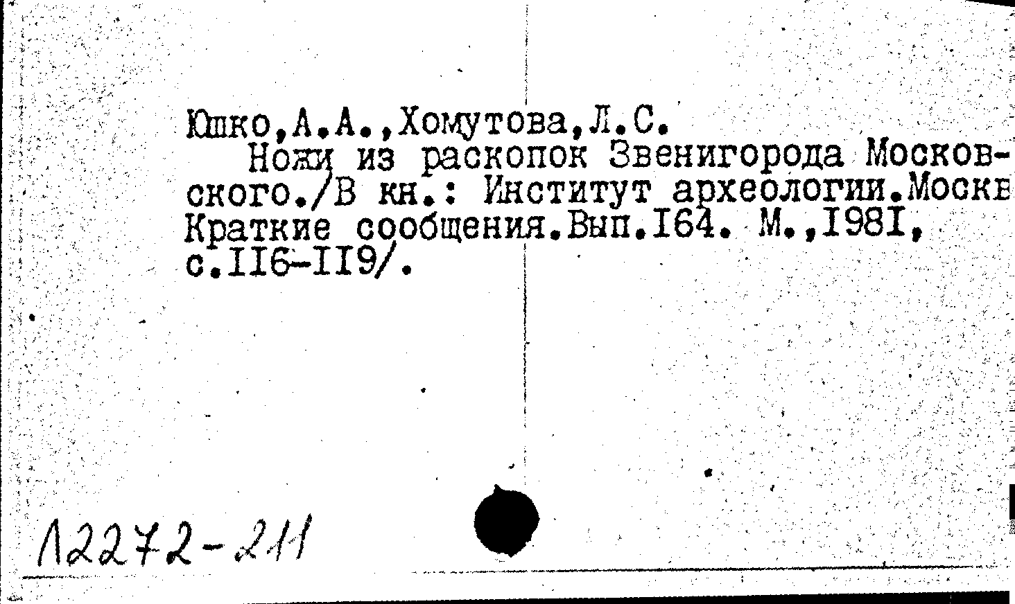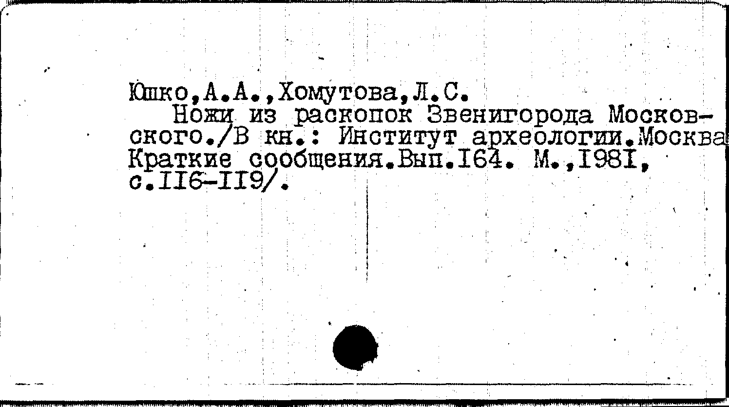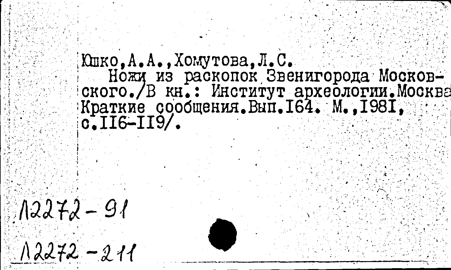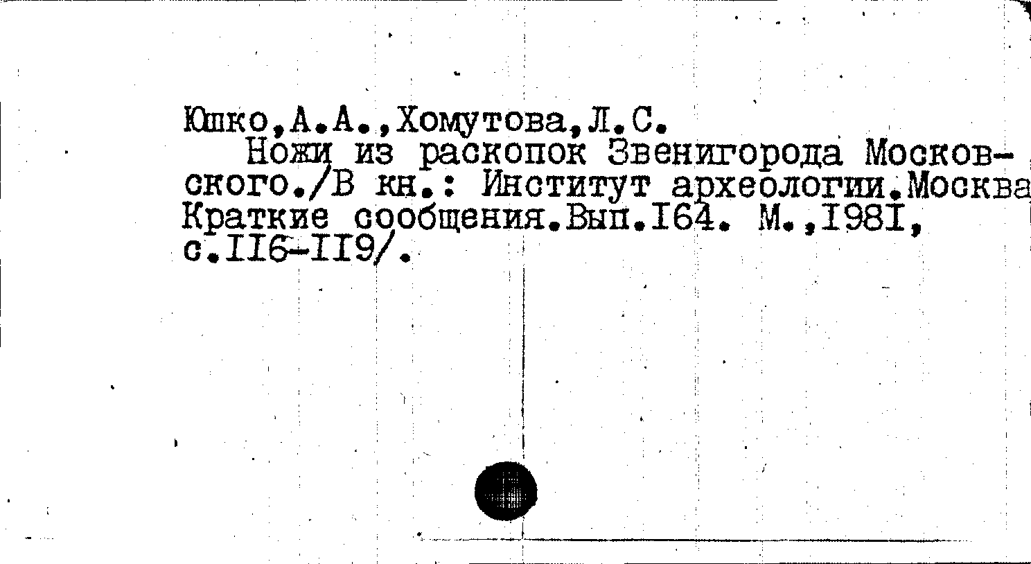 Книга (аналит. описание): Ножи из раскопок Звенигорода Московского