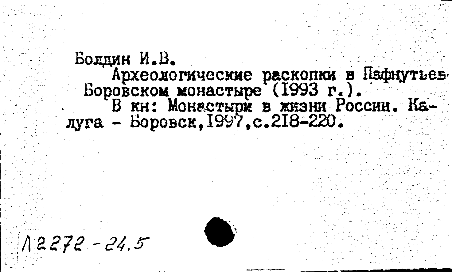 Археологические раскопки в Пафнутьев-Боровском монастыре (1993 г.)