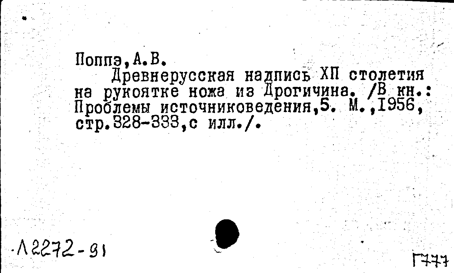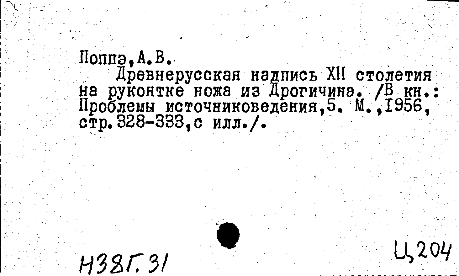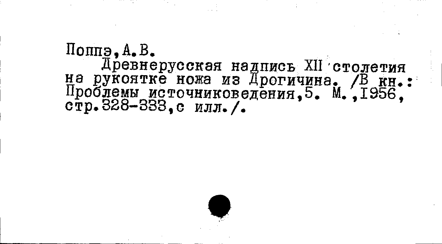 Книга (аналит. описание): Древнерусская надпись XII столетия на рукоятке ножа из Дрогичина