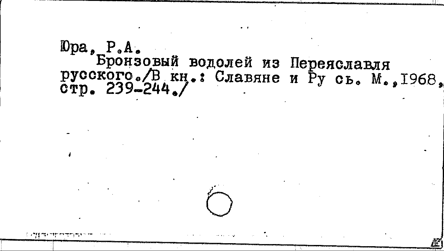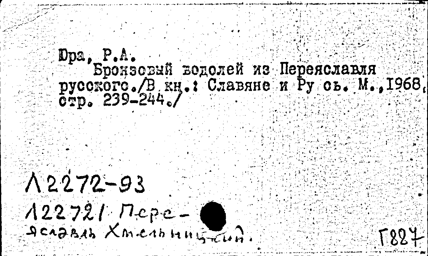 Книга (аналит. описание): Бронзовый водолей из Переяславля русского