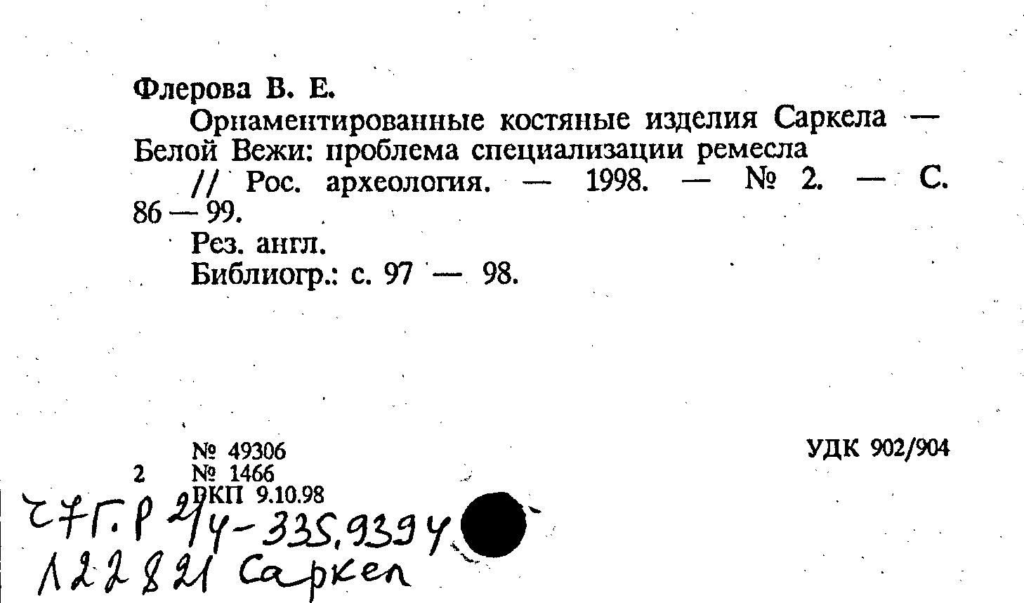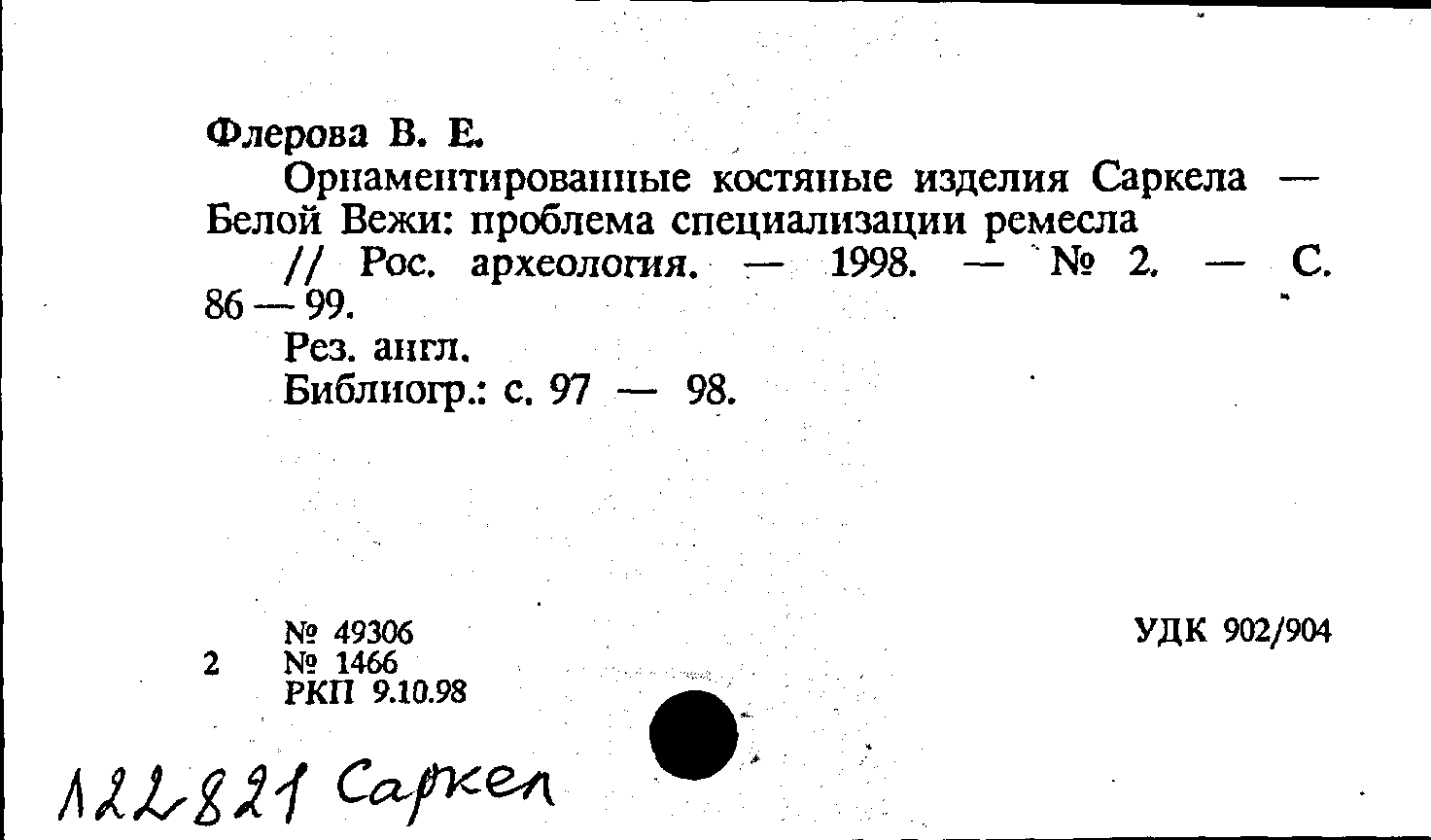 Книга (аналит. описание): Орнаментированные костяные изделия Саркела - Белой Вежи: проблема специализации ремесла