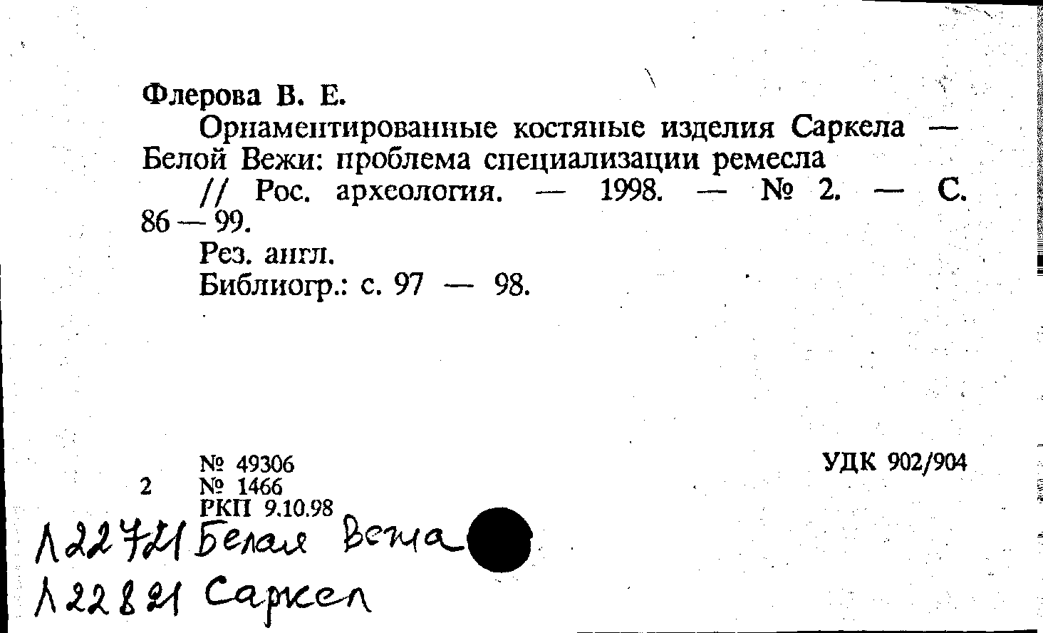 Древняя Русь (археология) \ Города \ Белая Вежа (25)