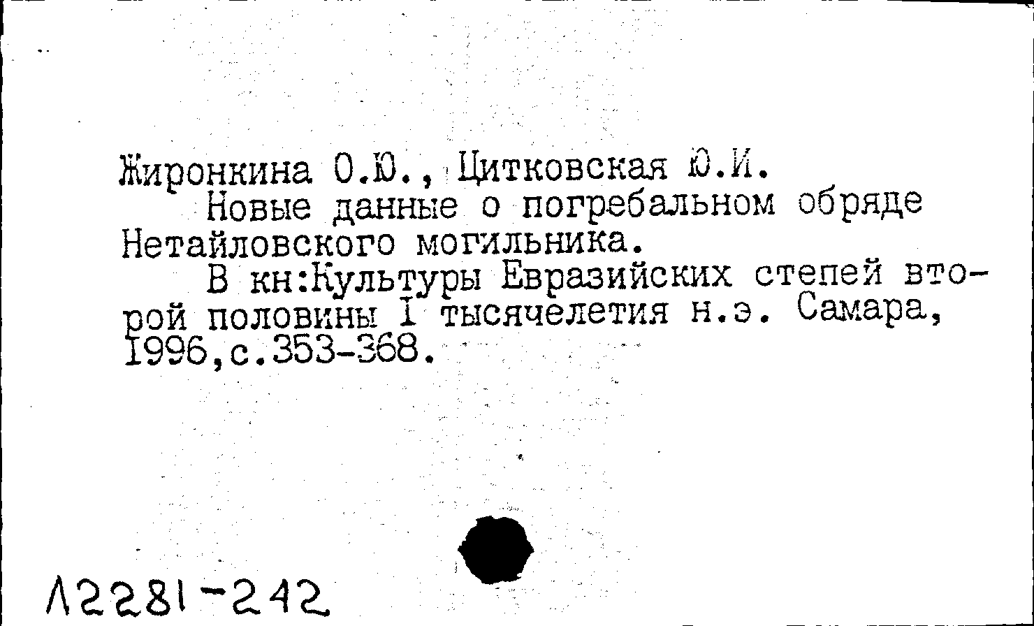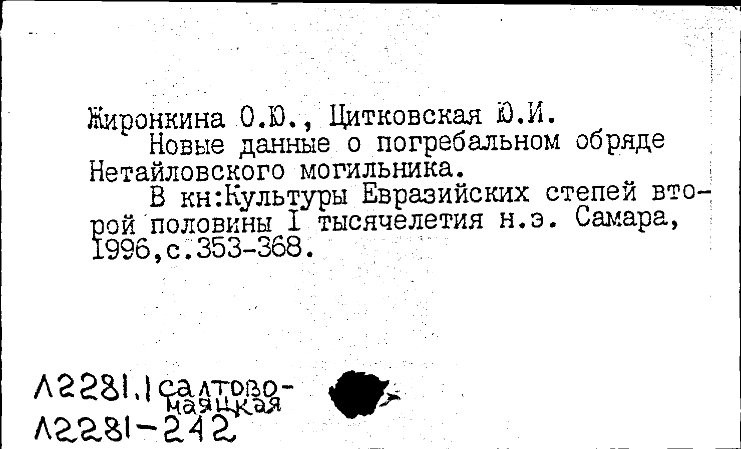 Книга (аналит. описание): Новые данные о погребальном обряде Нетайловского могильника