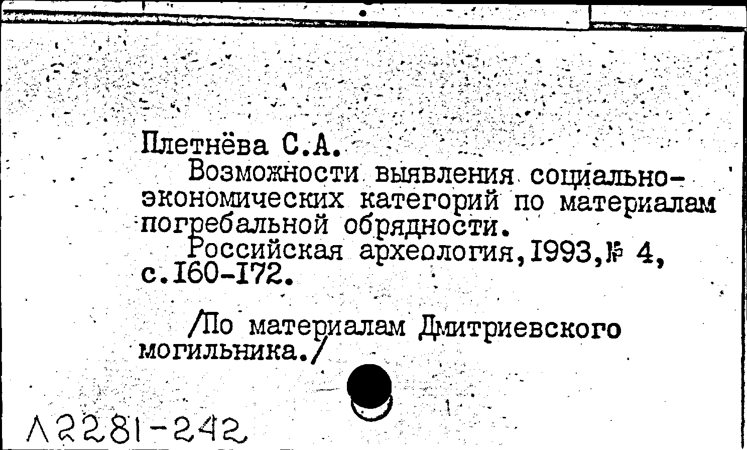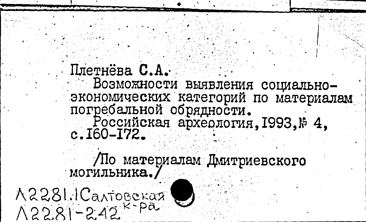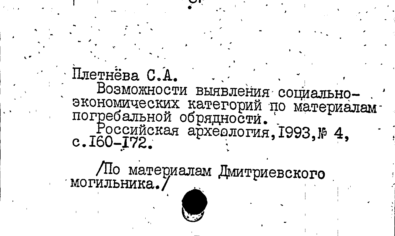 Возможности выявления социально-экономических категорий по материалам погребальной обрядности