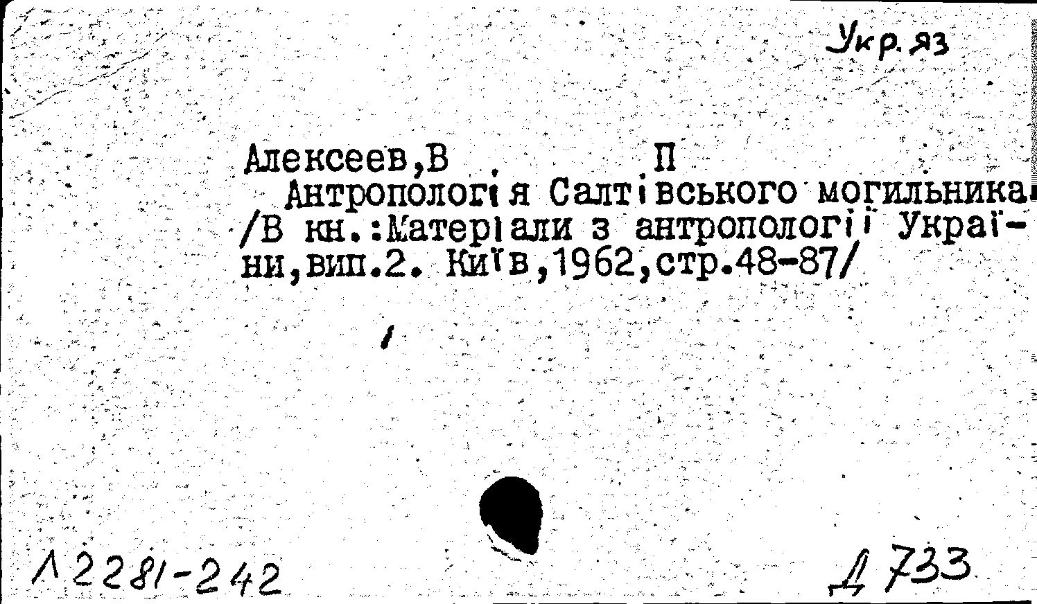 Книга (аналит. описание): Антропологiя Салтiвського могильника