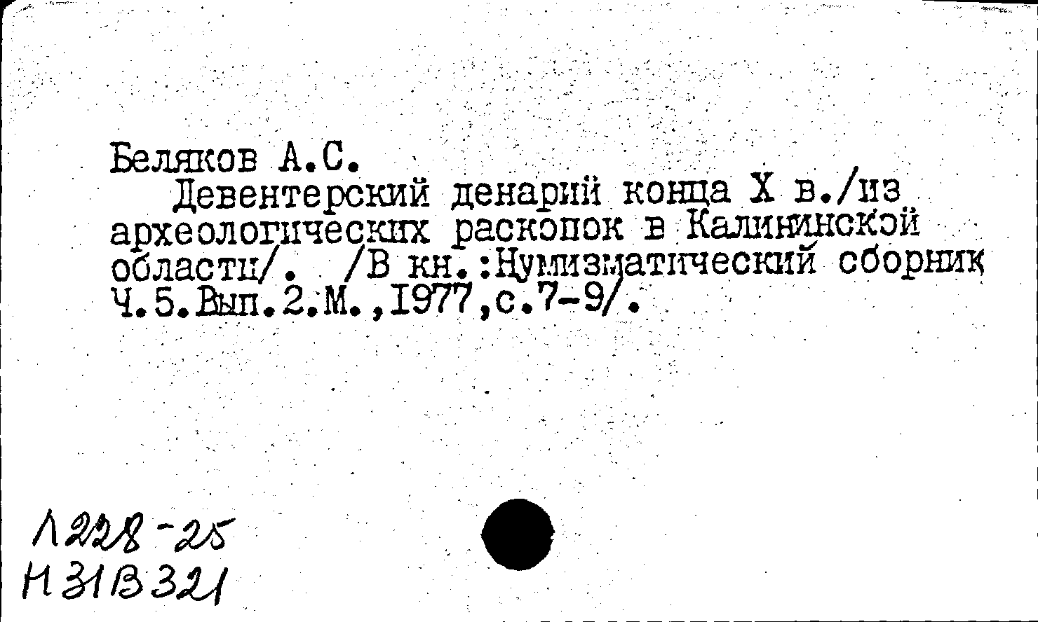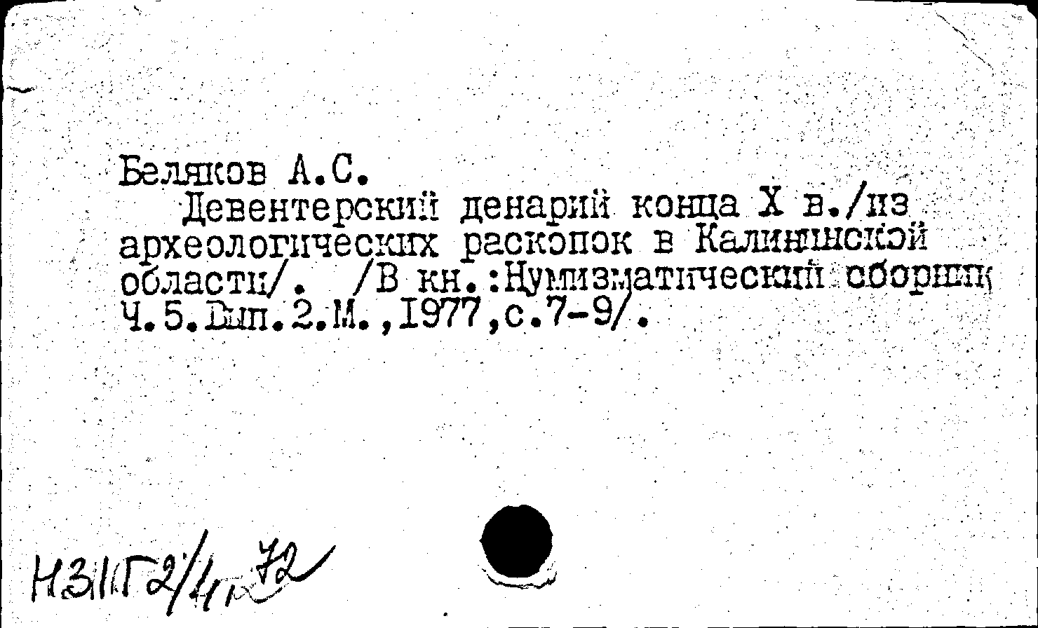 Книга (аналит. описание): Девентерский денарий конца X в. (из археологических раскопок в Калининской области)