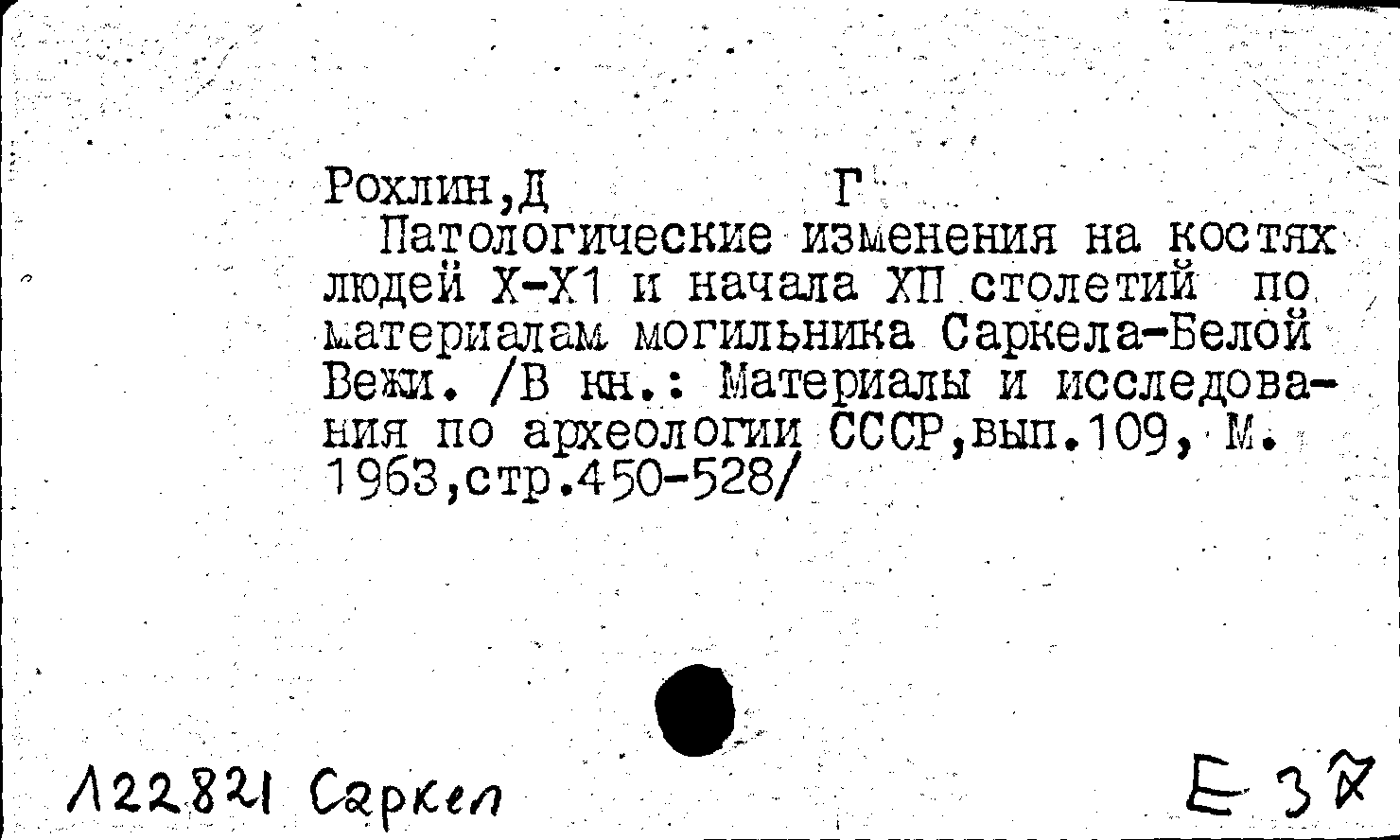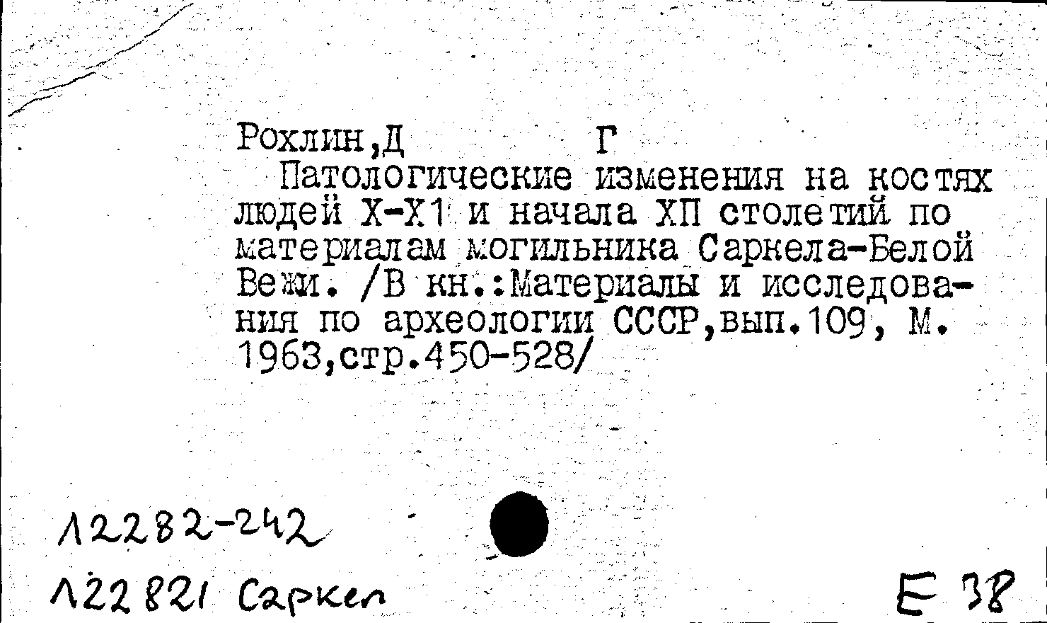 Книга (аналит. описание): Патологические изменения на костях людей X-XI и начала XII столетий по материалам могильника Саркела-Белой Вежи