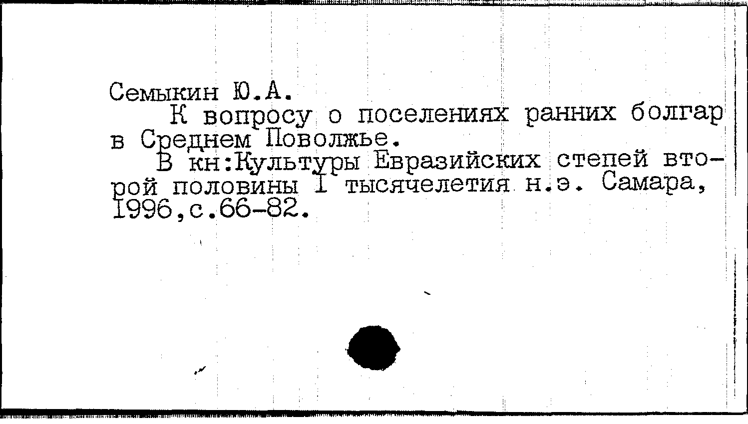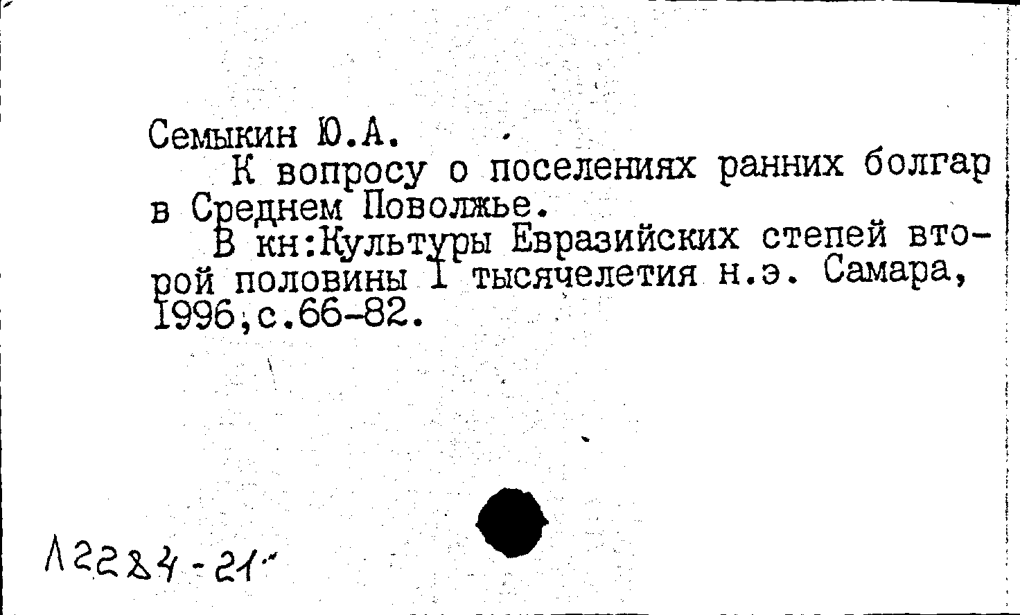 Книга (аналит. описание): К вопросу о поселениях ранних болгар в Среднем Поволжье