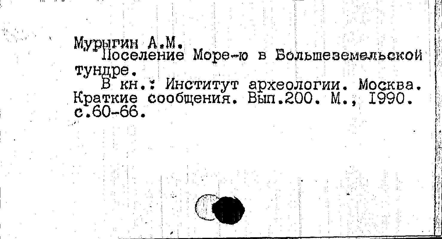 Книга (аналит. описание): Поселение Море-ю в Большеземельской тундре