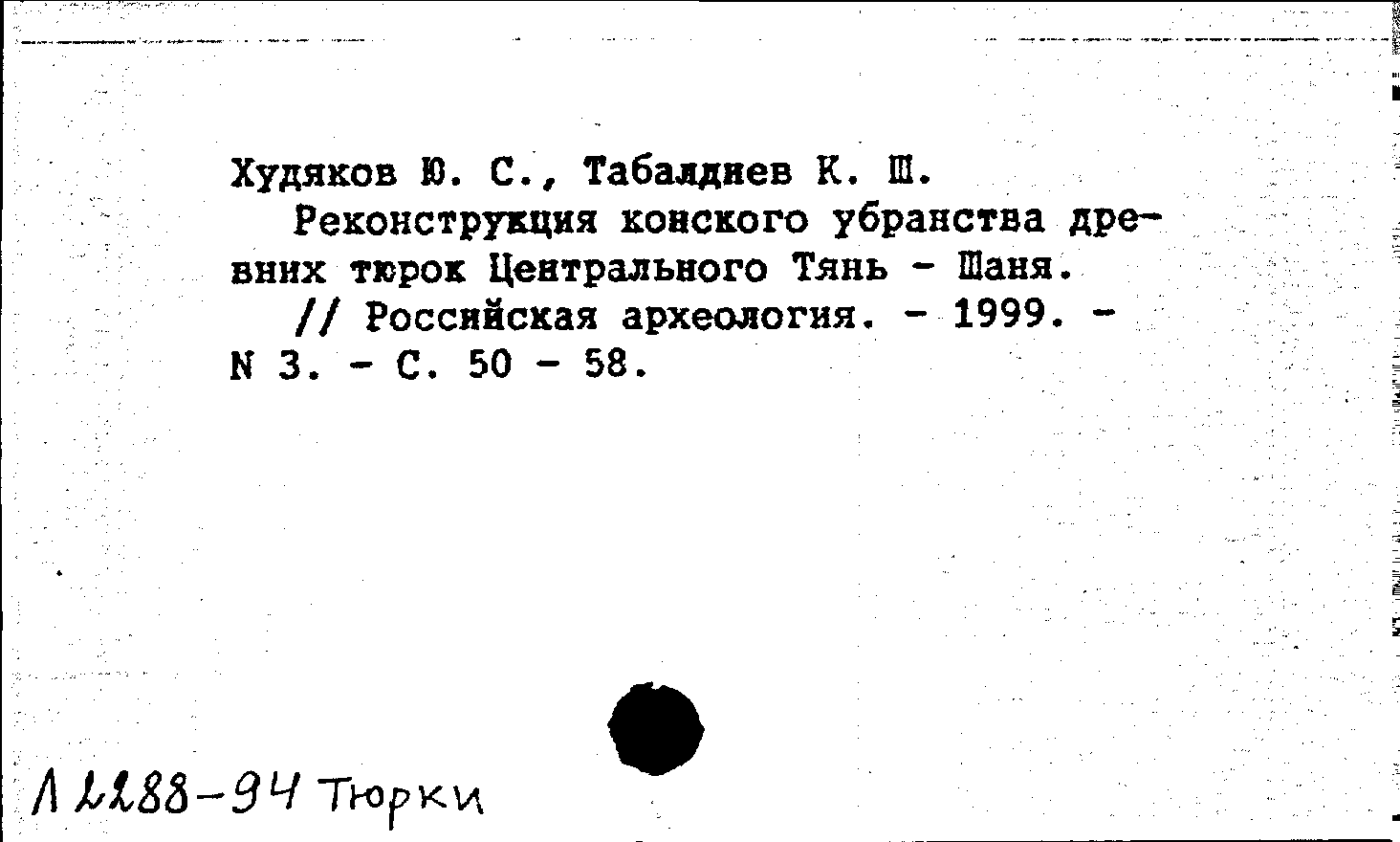 Книга (аналит. описание): Реконструкция конского убранства древних тюрок Центрального Тянь-Шаня