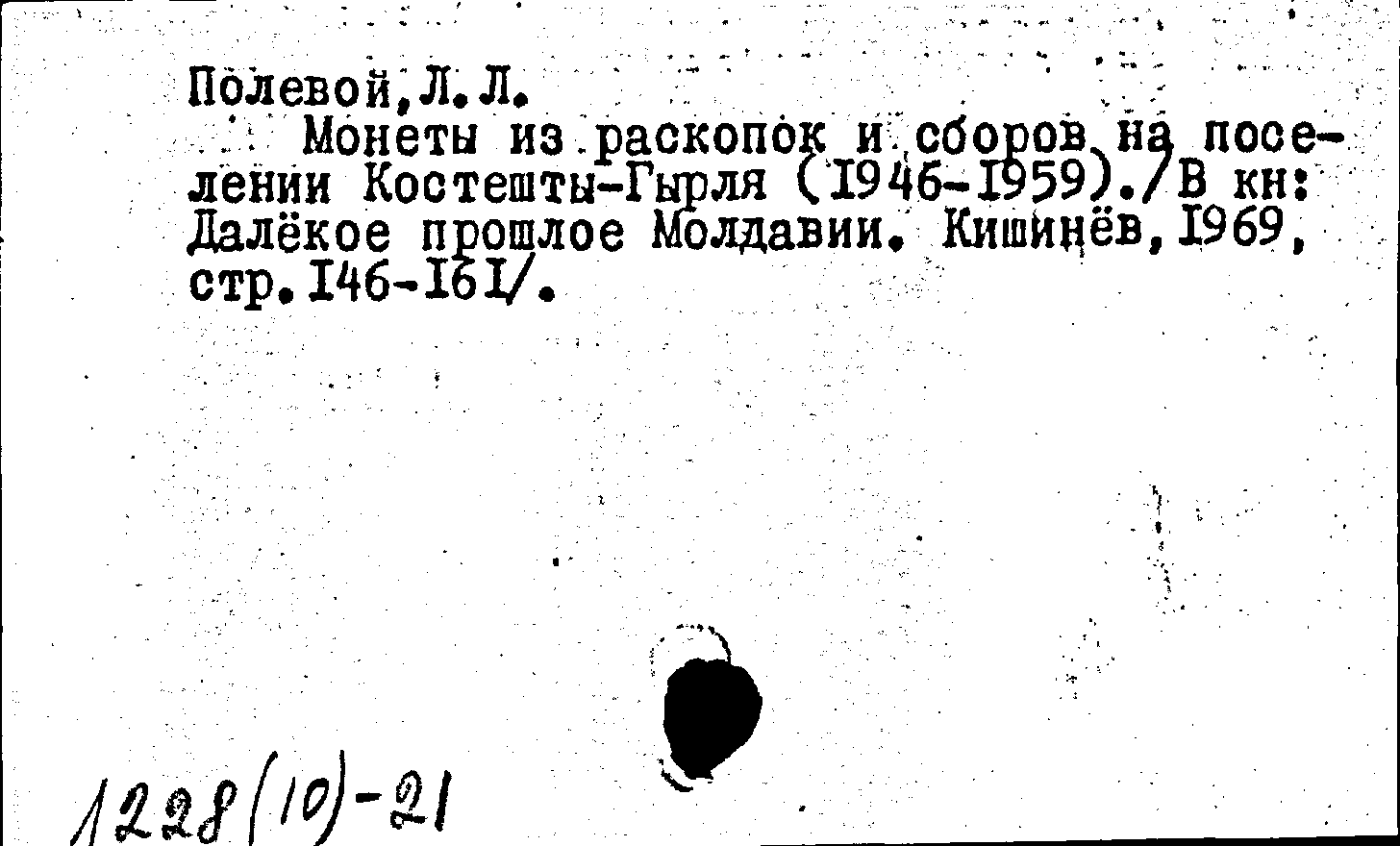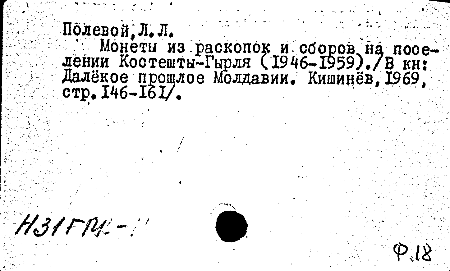 Монеты из раскопок и сборов на поселении Костешты-Гырля (1946-1959)