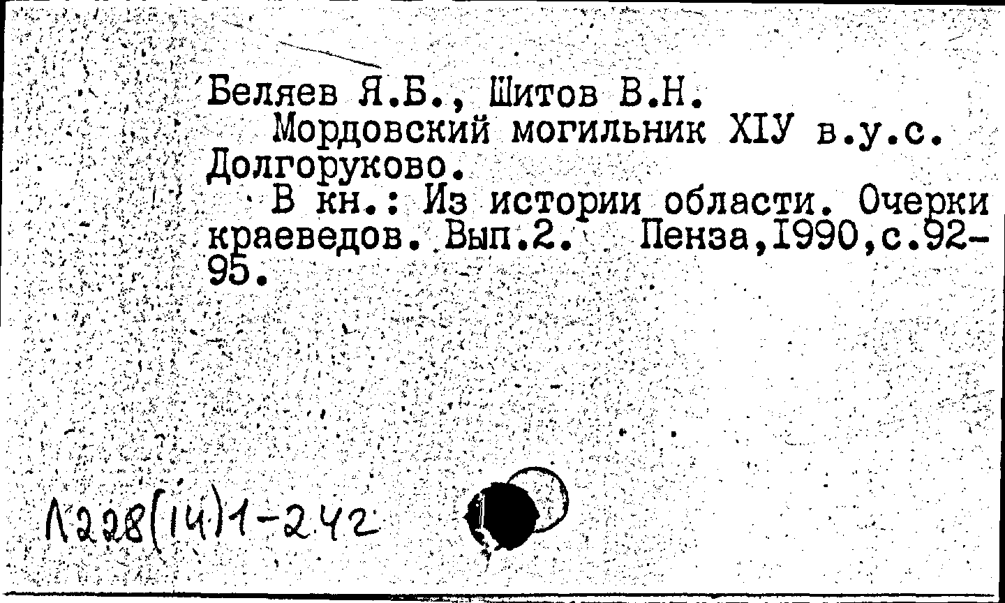 Книга (аналит. описание): Мордовский могильник XIV в. у с. Долгоруково
