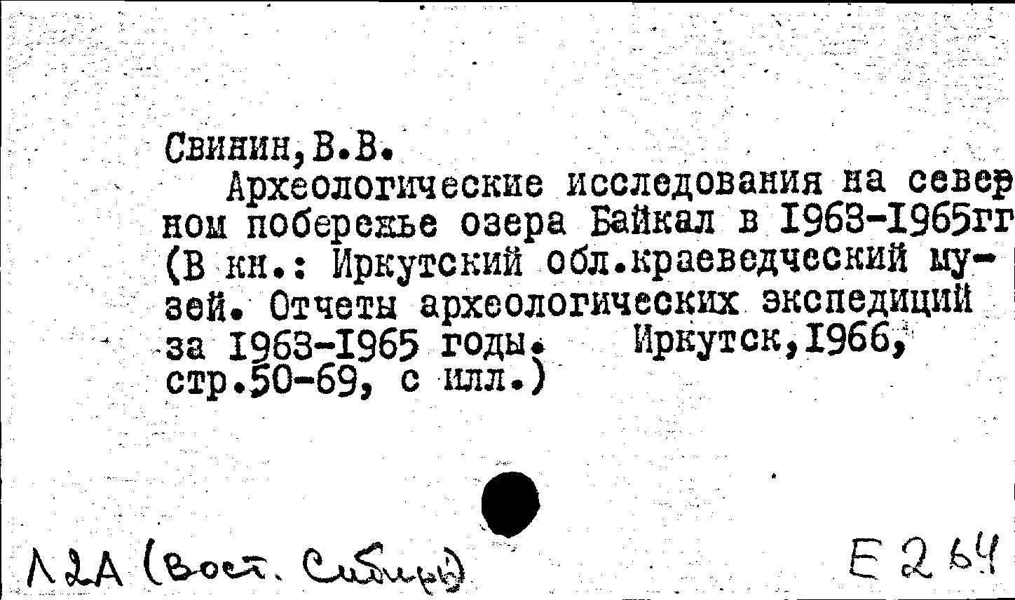 Археология Российской Федерации \ Отд. территории \ Восточная Сибирь (72)