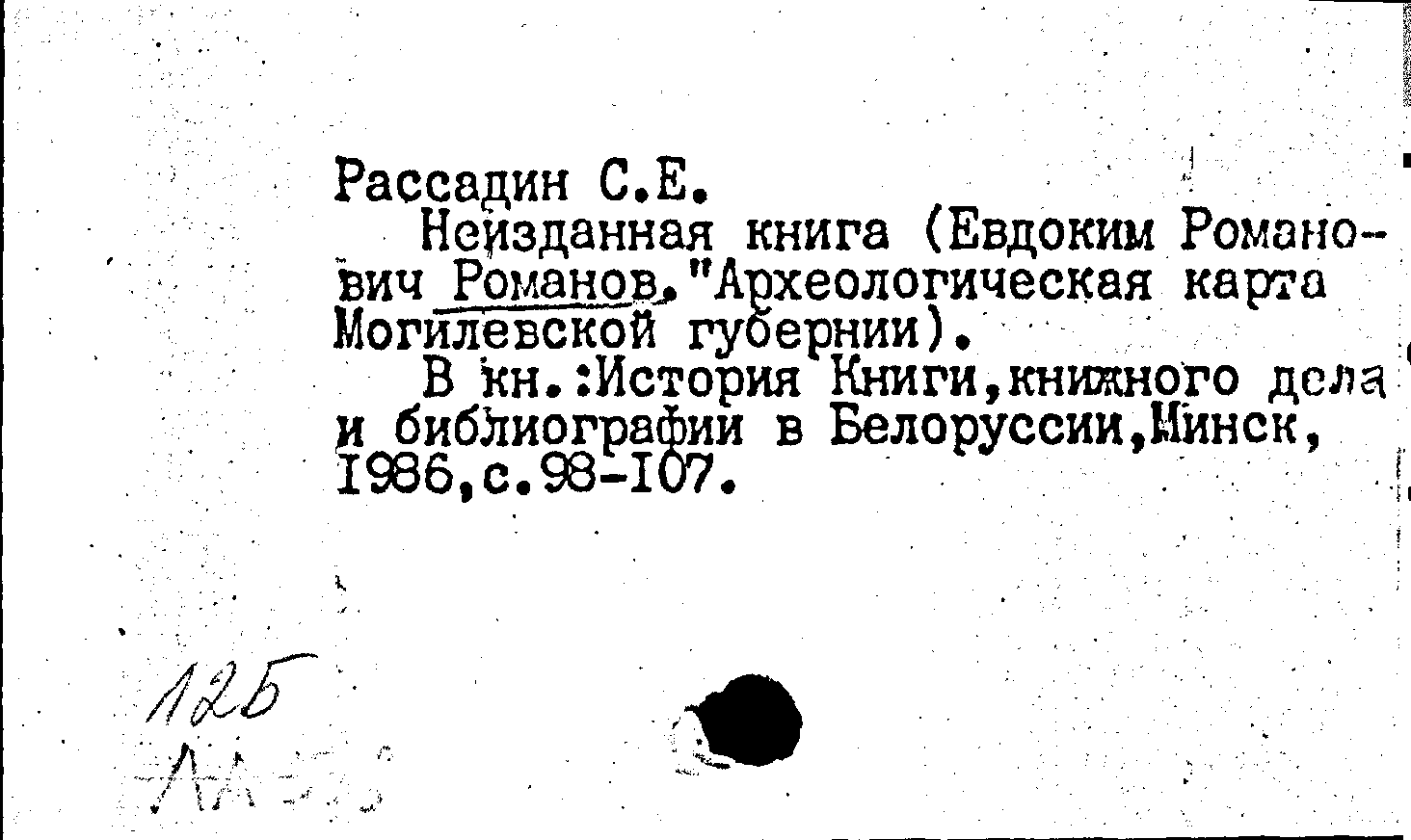 Книга (аналит. описание): Неизданная книга (Евдоким Романович Романов. Археологическая карта Могилевской губернии)