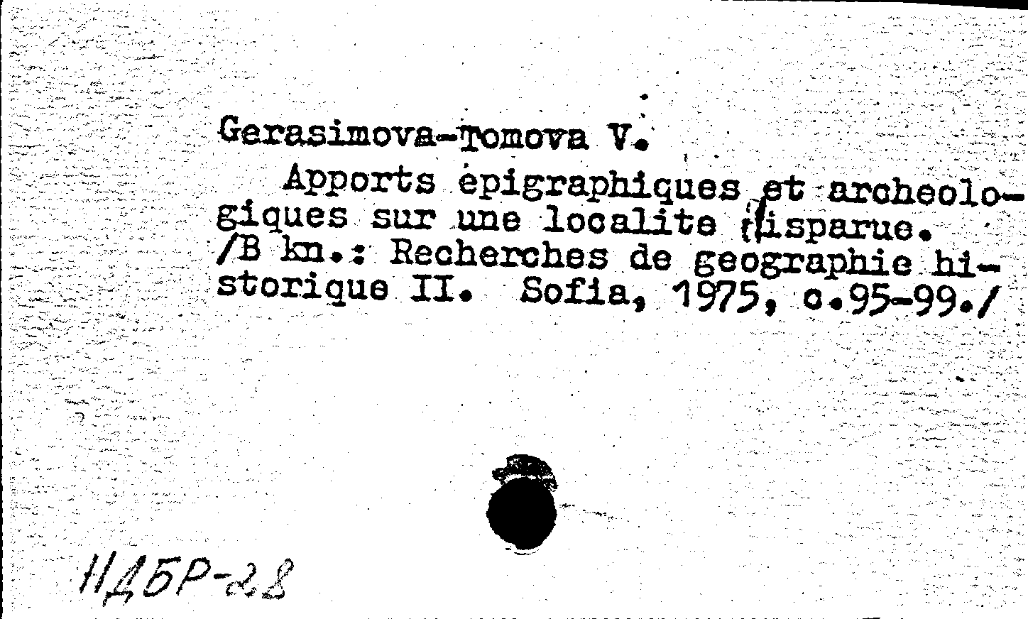 Книга (аналит. описание): Apports epigraphiques et archeologiques sur une localite disparue
