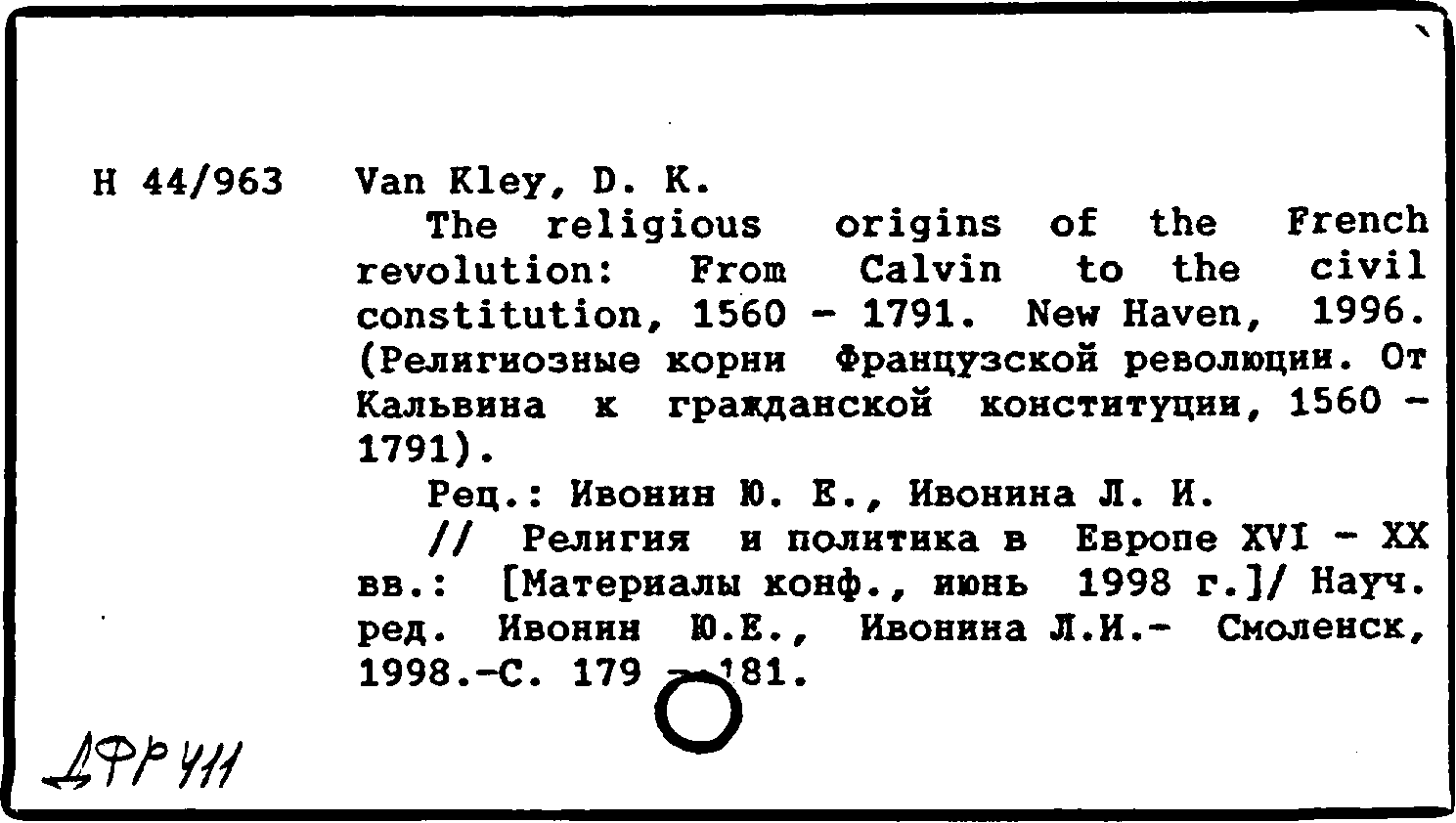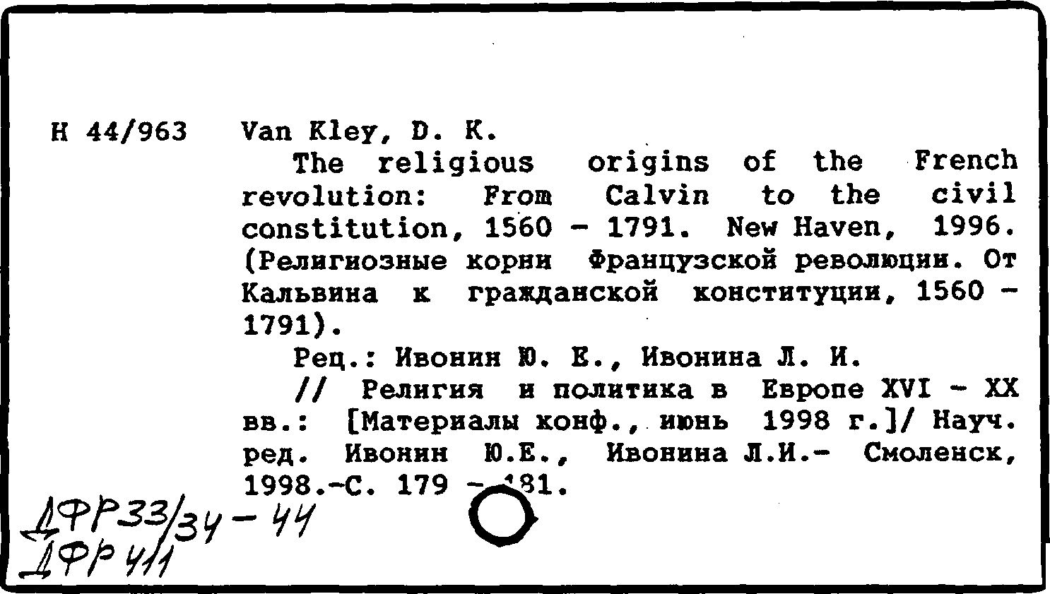 В сб.: Религия и политика в Европе XVI-XX вв. Смоленск, 1998.