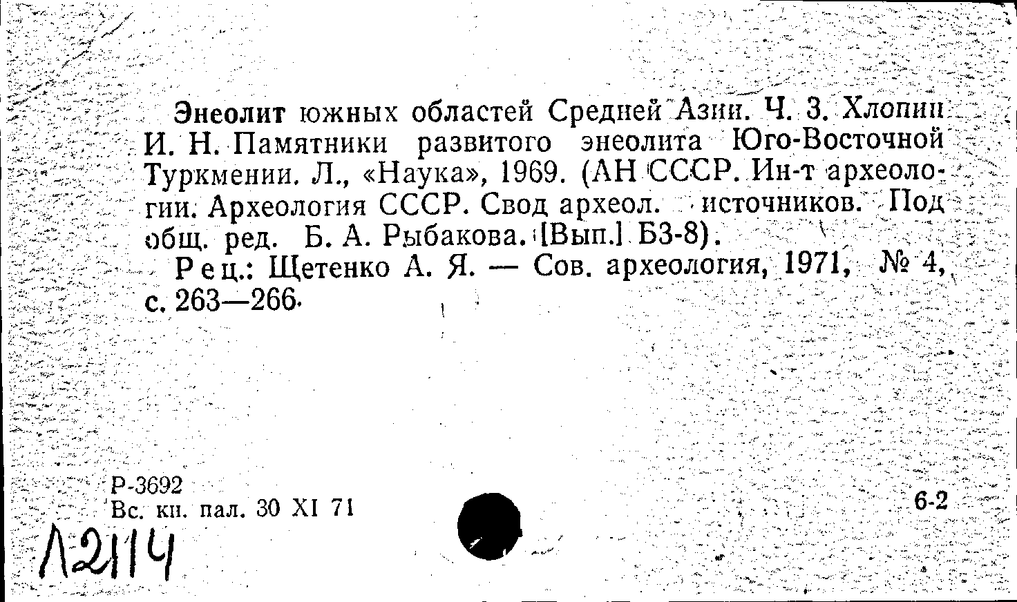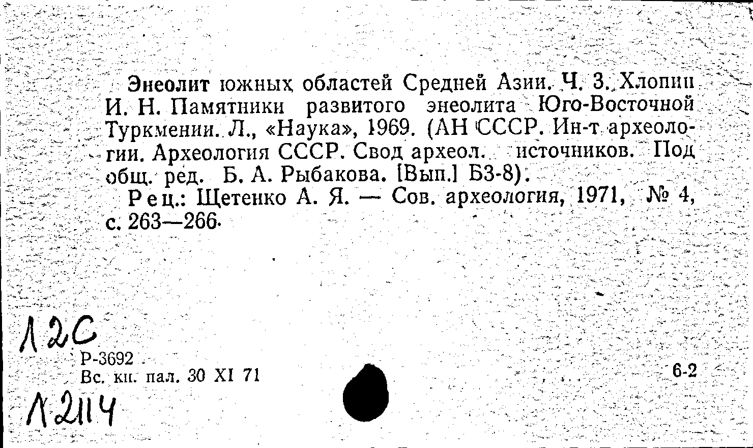 Памятники развитого энеолита Юго-Восточной Туркмении, Ч. 3