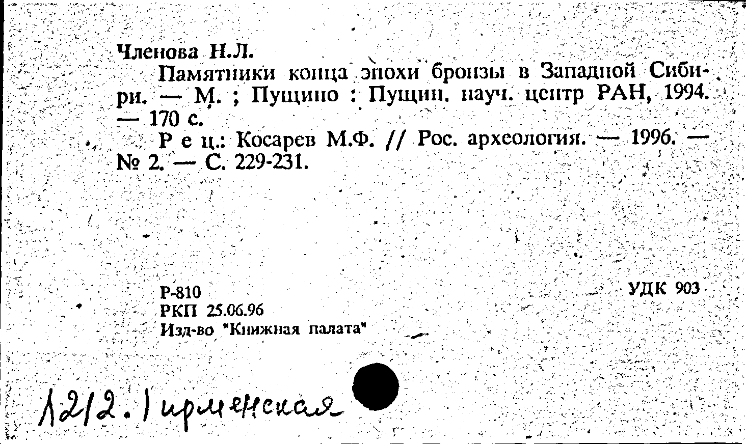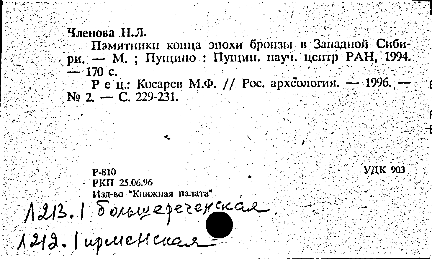 Бронзовый век СССР (археология) \ Археологические культуры \ Ирменская культура (29)