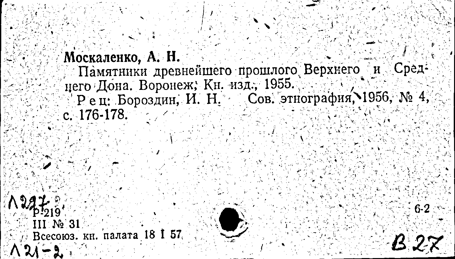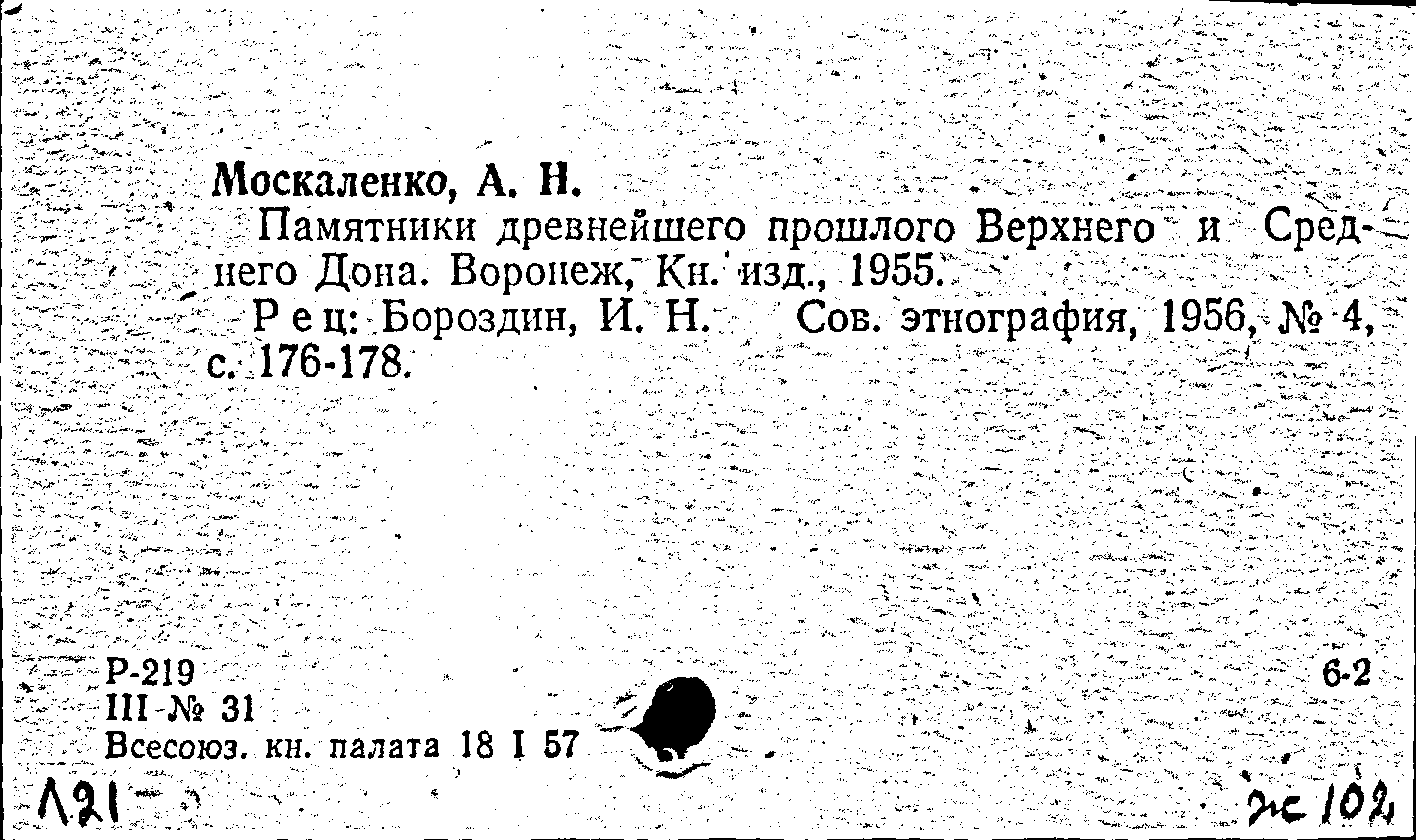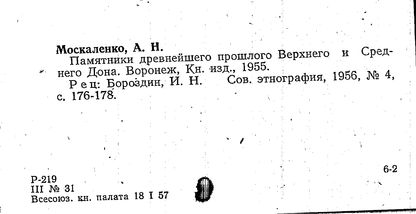 Памятники древнейшего прошлого Верхнего и Среднего Дона
