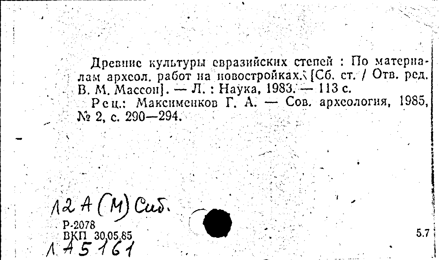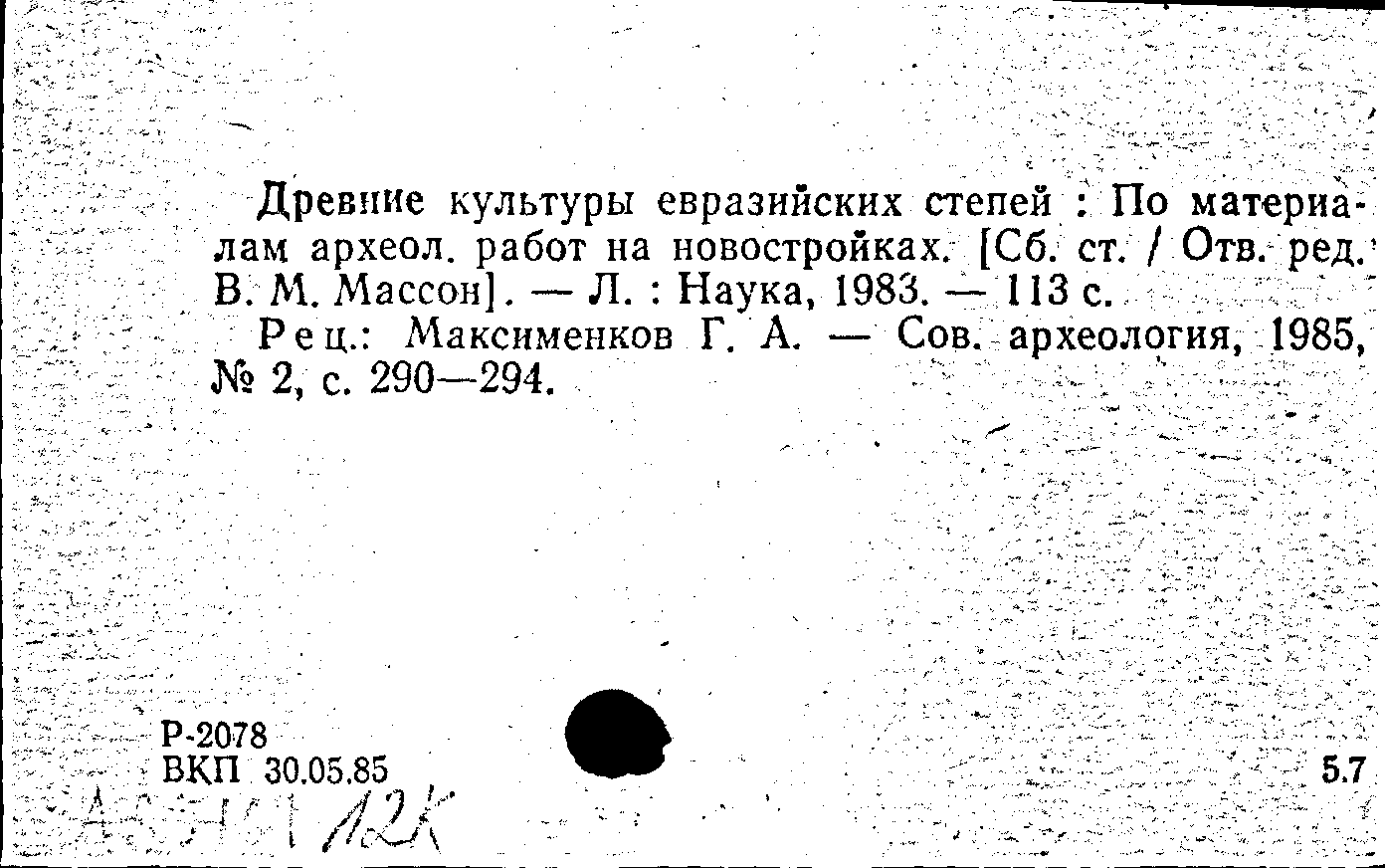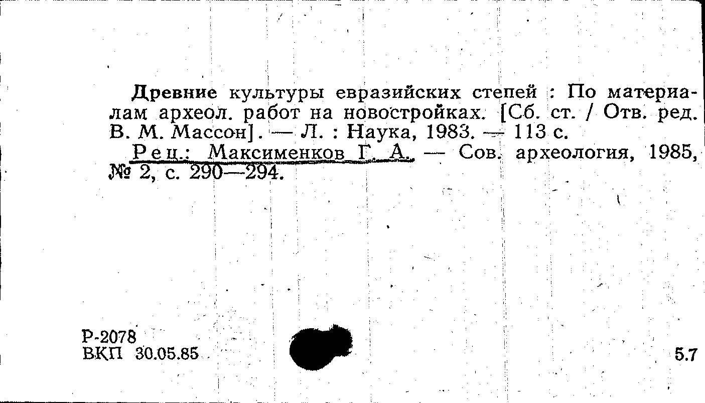 Статья: [Рецензия]. Советская археология, № 2 /1985: № 2 /1985