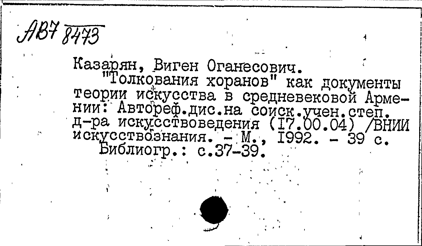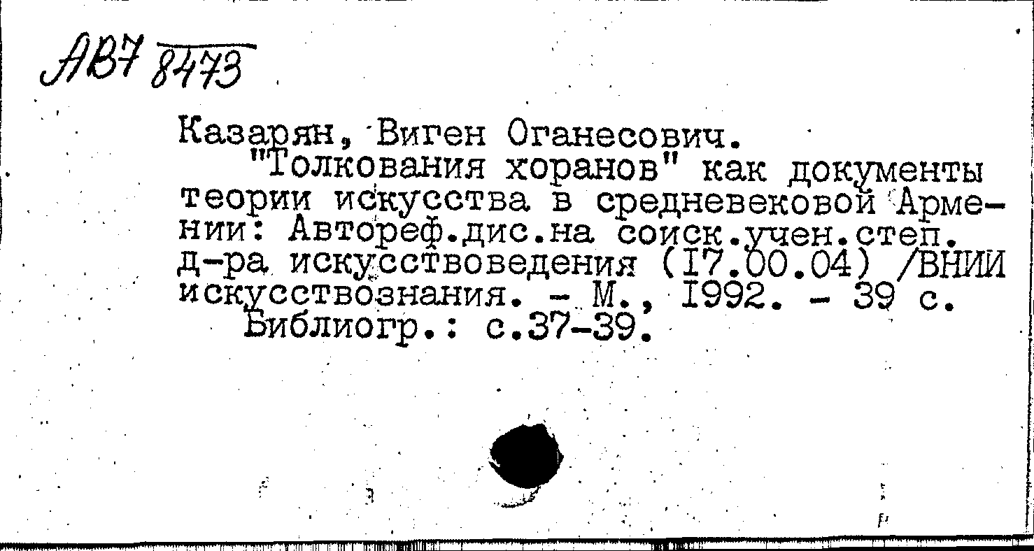 Книга: "Толкования хоранов" как документы теории искусства в средневековой Армении