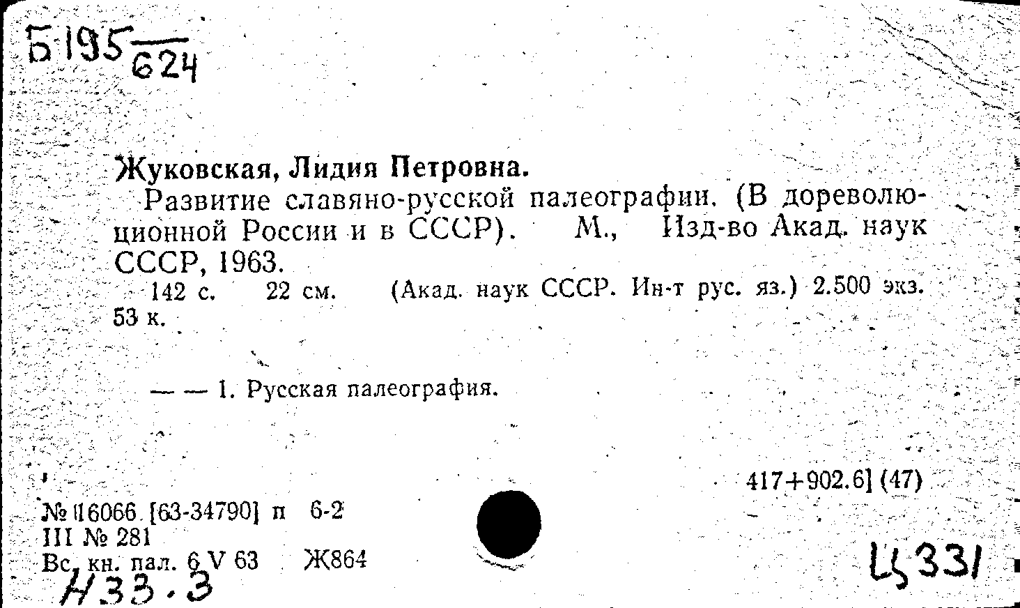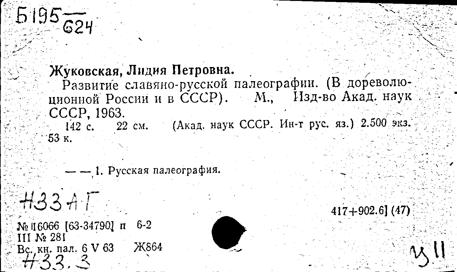Фонд: КХ, Шифр: Б 195 /624, Инв.№: 0775788