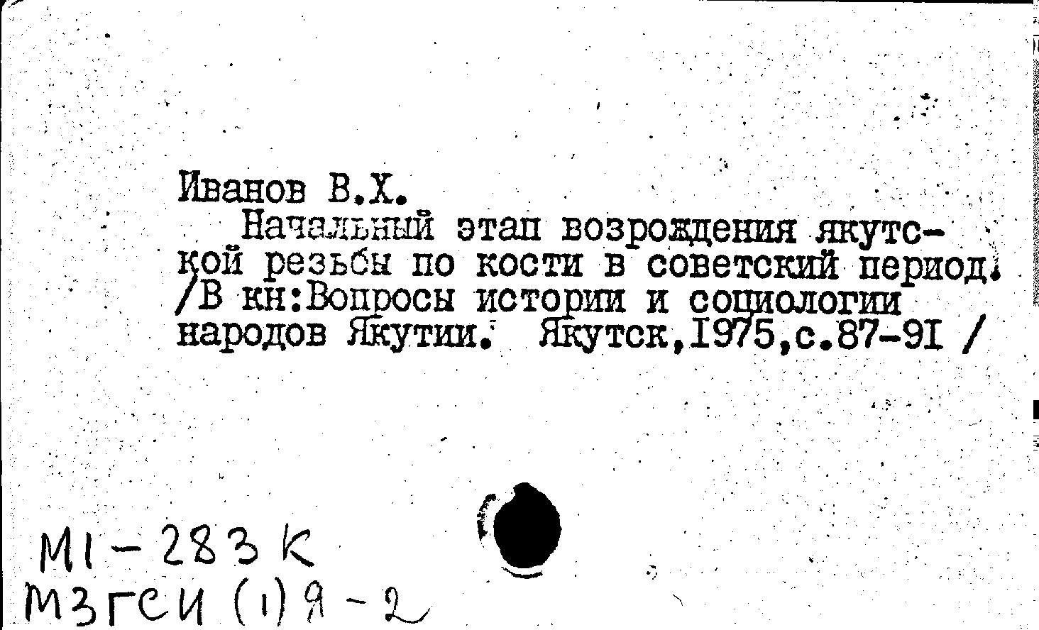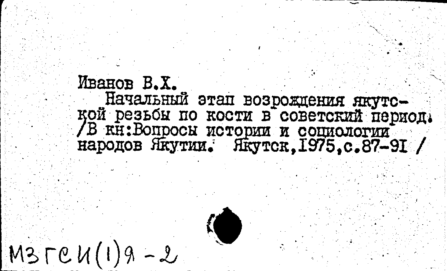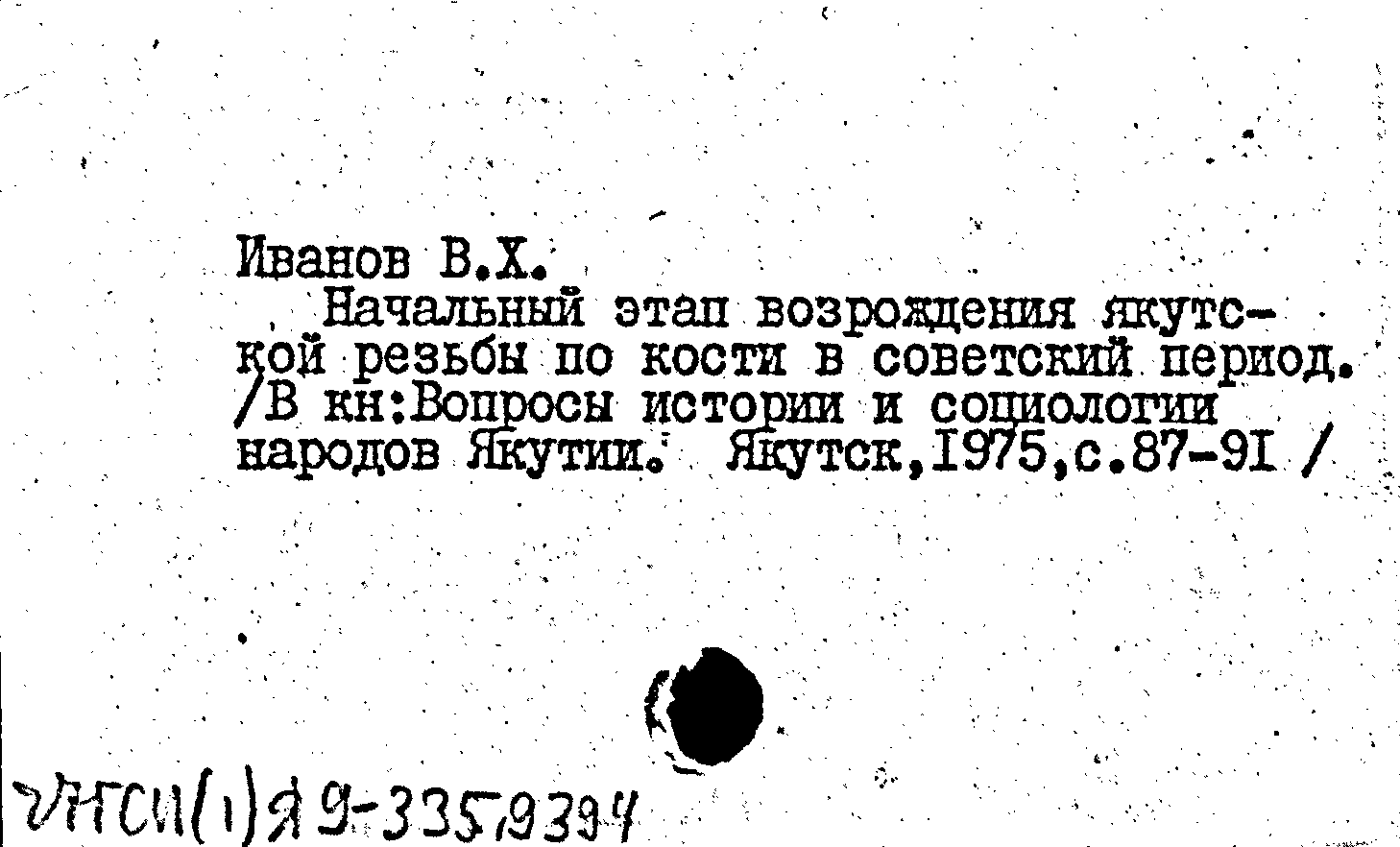 Книга (аналит. описание): Начальный этап возрождения якутской резьбы по кости в советский период