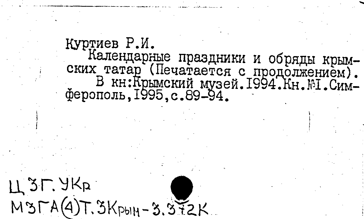 Книга (аналит. описание): Календарные праздники и обряды крымских татар