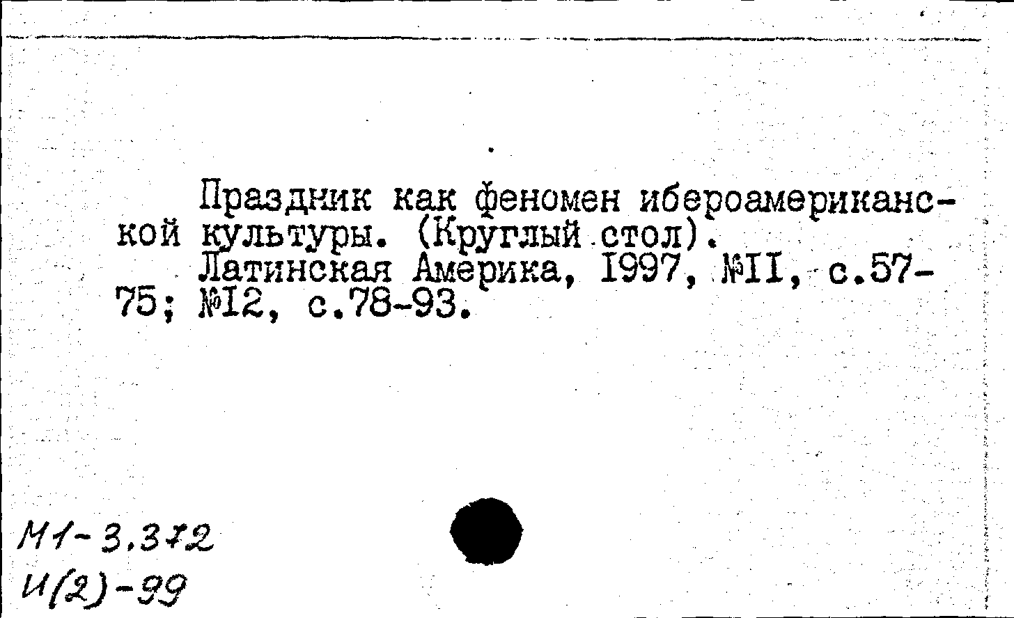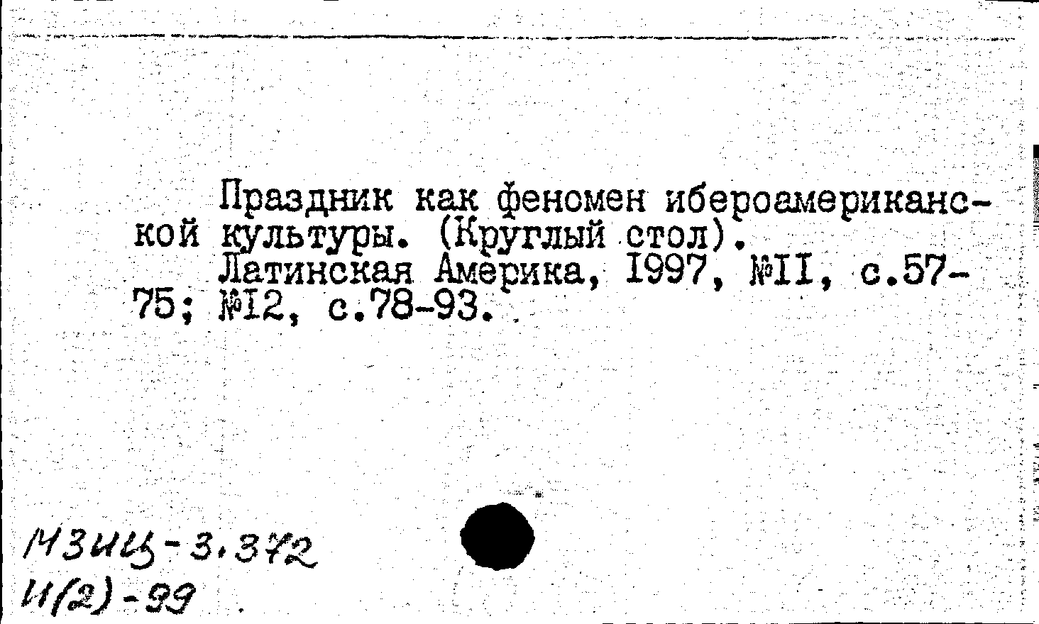 Праздник как феномен ибероамериканской культуры. (Круглый стол)