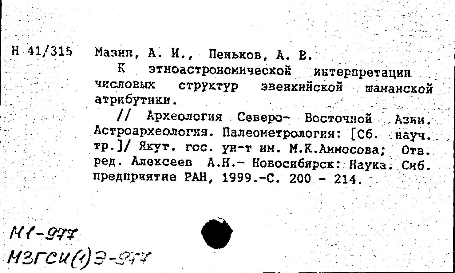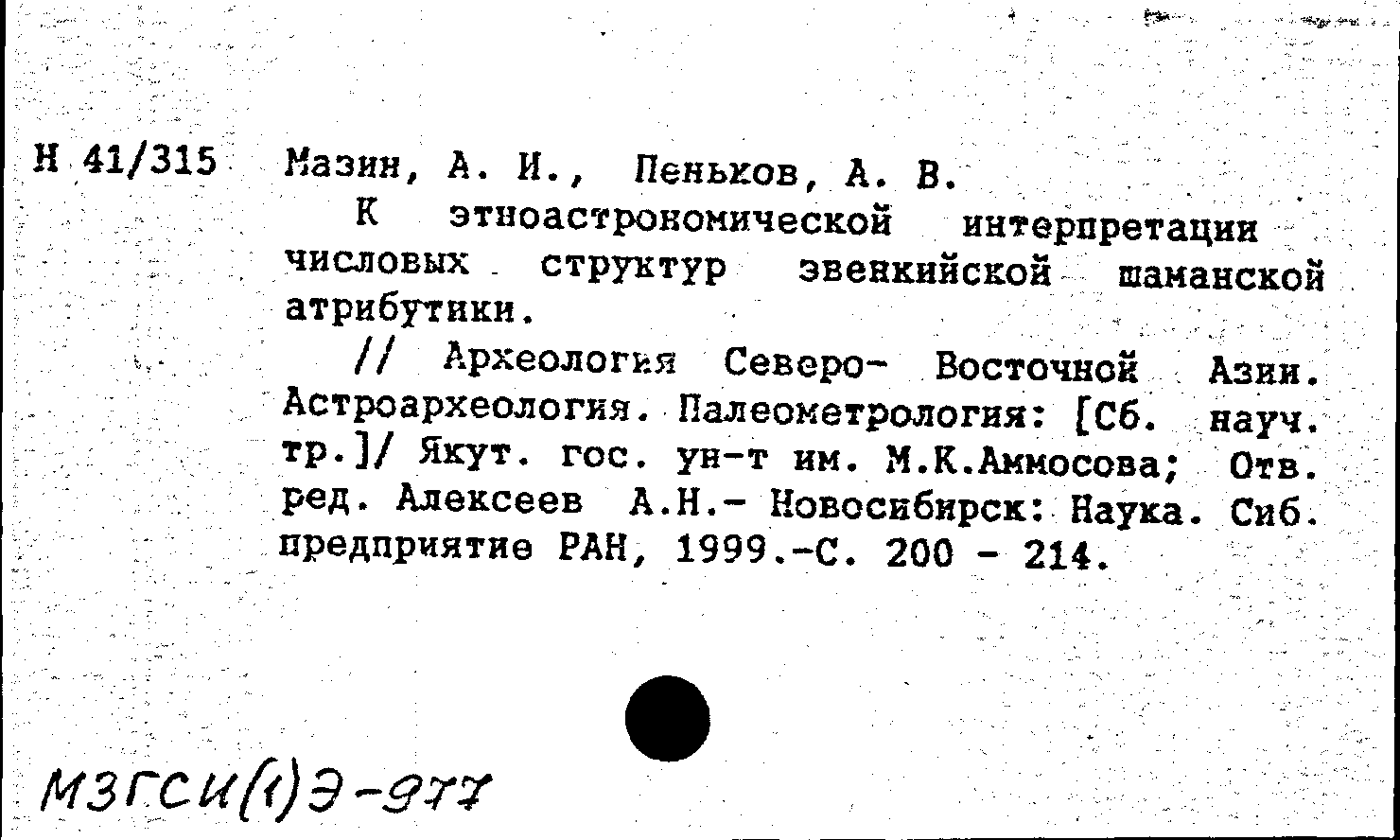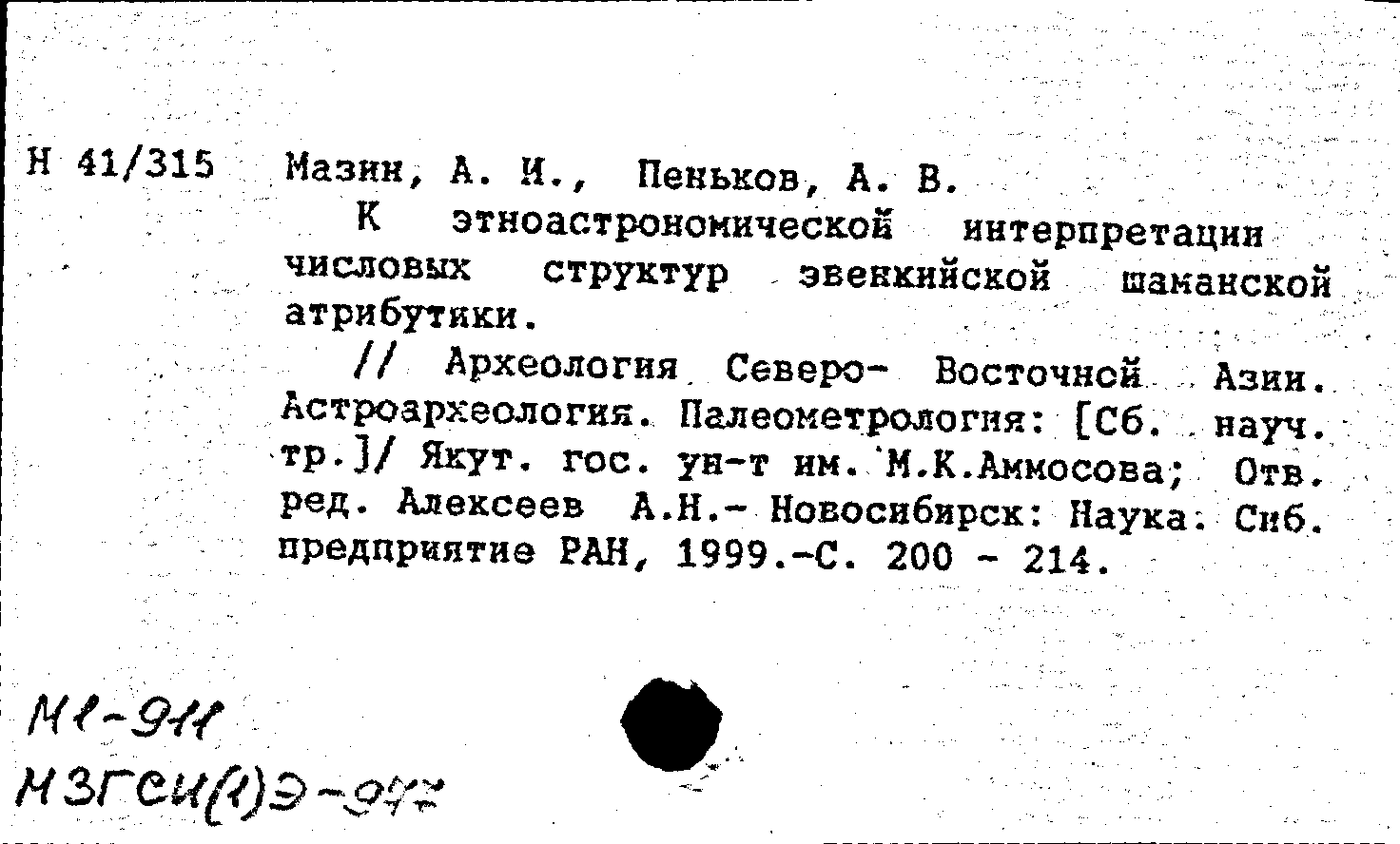 Книга (аналит. описание): К этноастрономической интерпретации числовых структур эвенкийской шаманской атрибутики