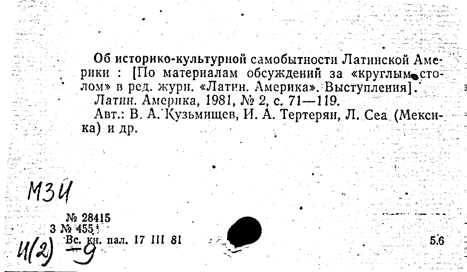 Книга (аналит. описание): Об историко-культурной самобытности Латинской Америки
