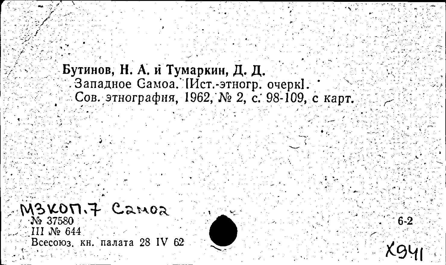 Статья: Западное Самоа. Советская этнография, № 2 /1962: № 2 /1962