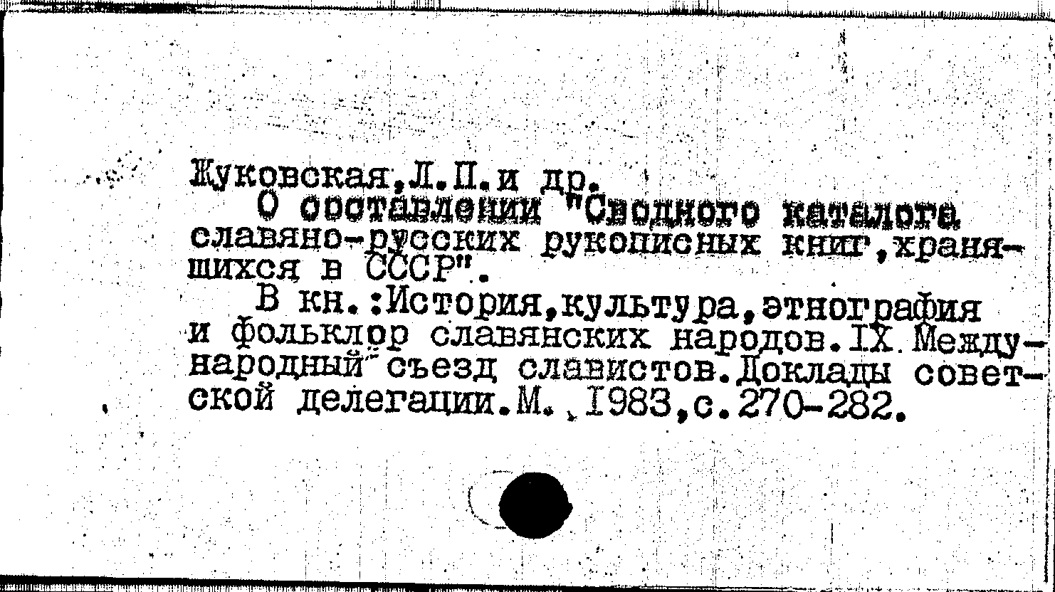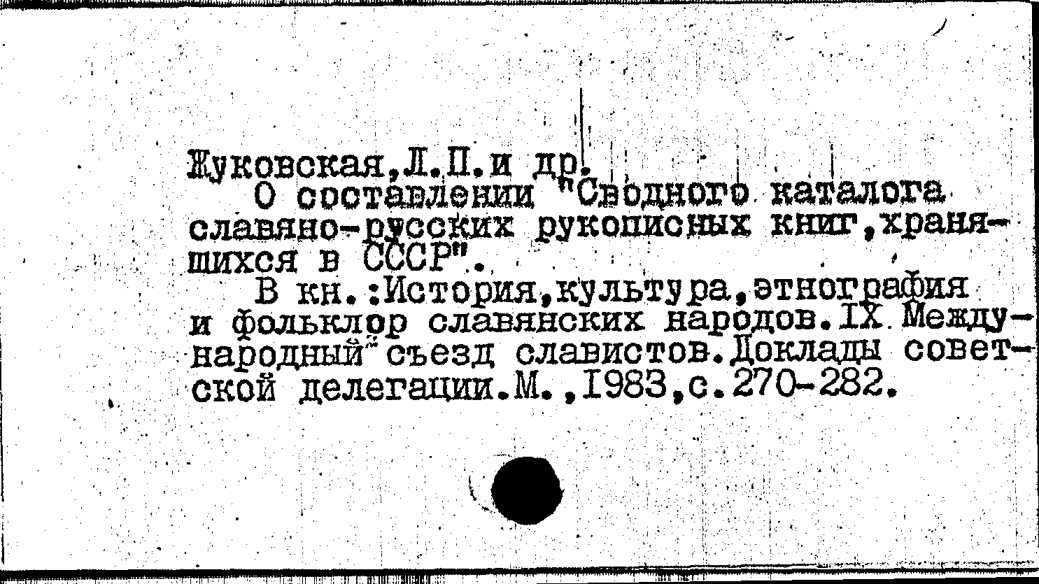 Книга (аналит. описание): О составлении "Сводного каталога славяно-русских рукописных книг, хранящихся в СССР"
