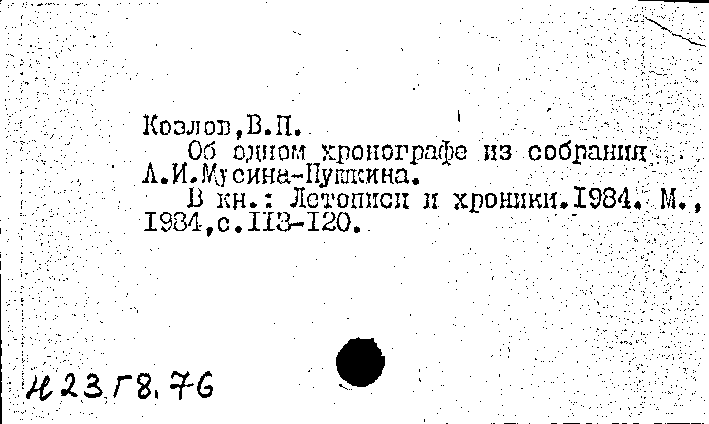 Об одном хронографе из собрания А. И. Мусина-Пушкина