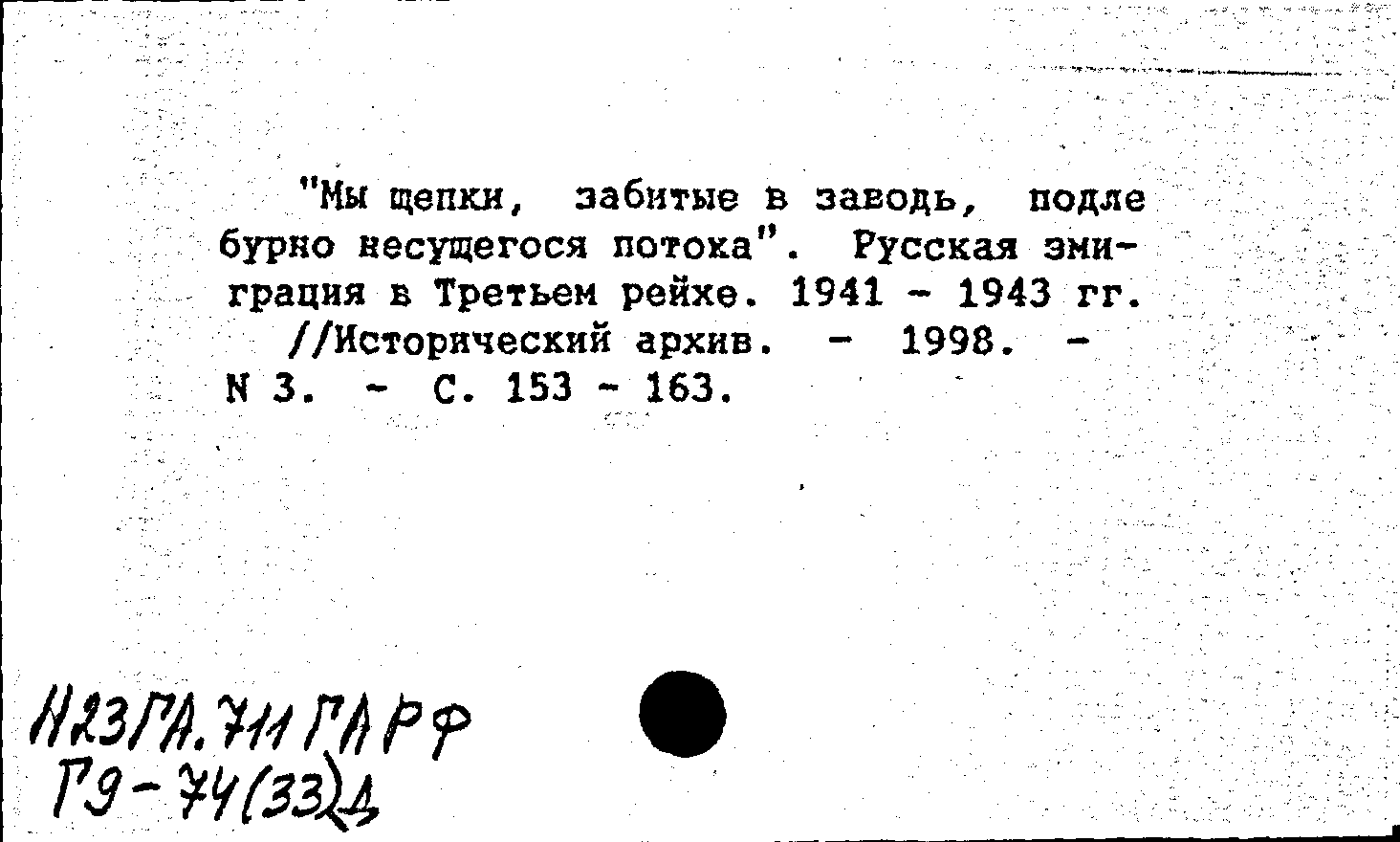 Книга (аналит. описание): "Мы щепки, забитые в заводь, подле бурно несущегося потока". Русская эмиграция в Третьем рейхе. 1941-1943 гг.