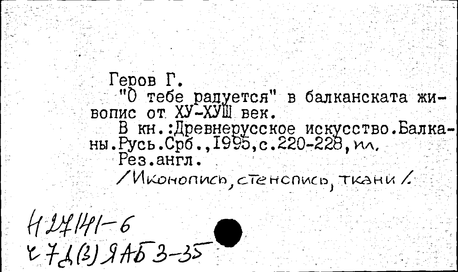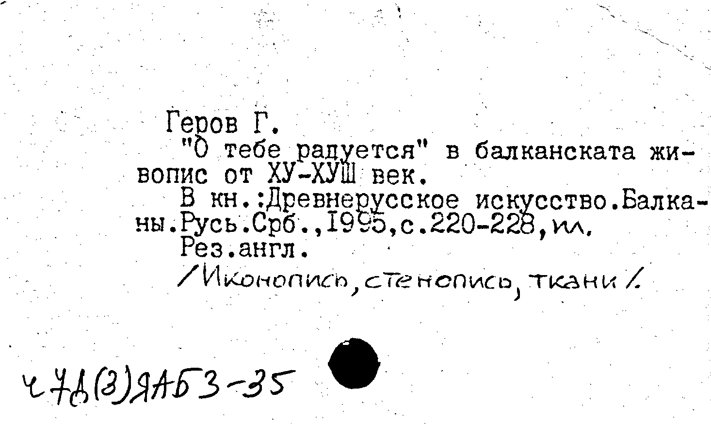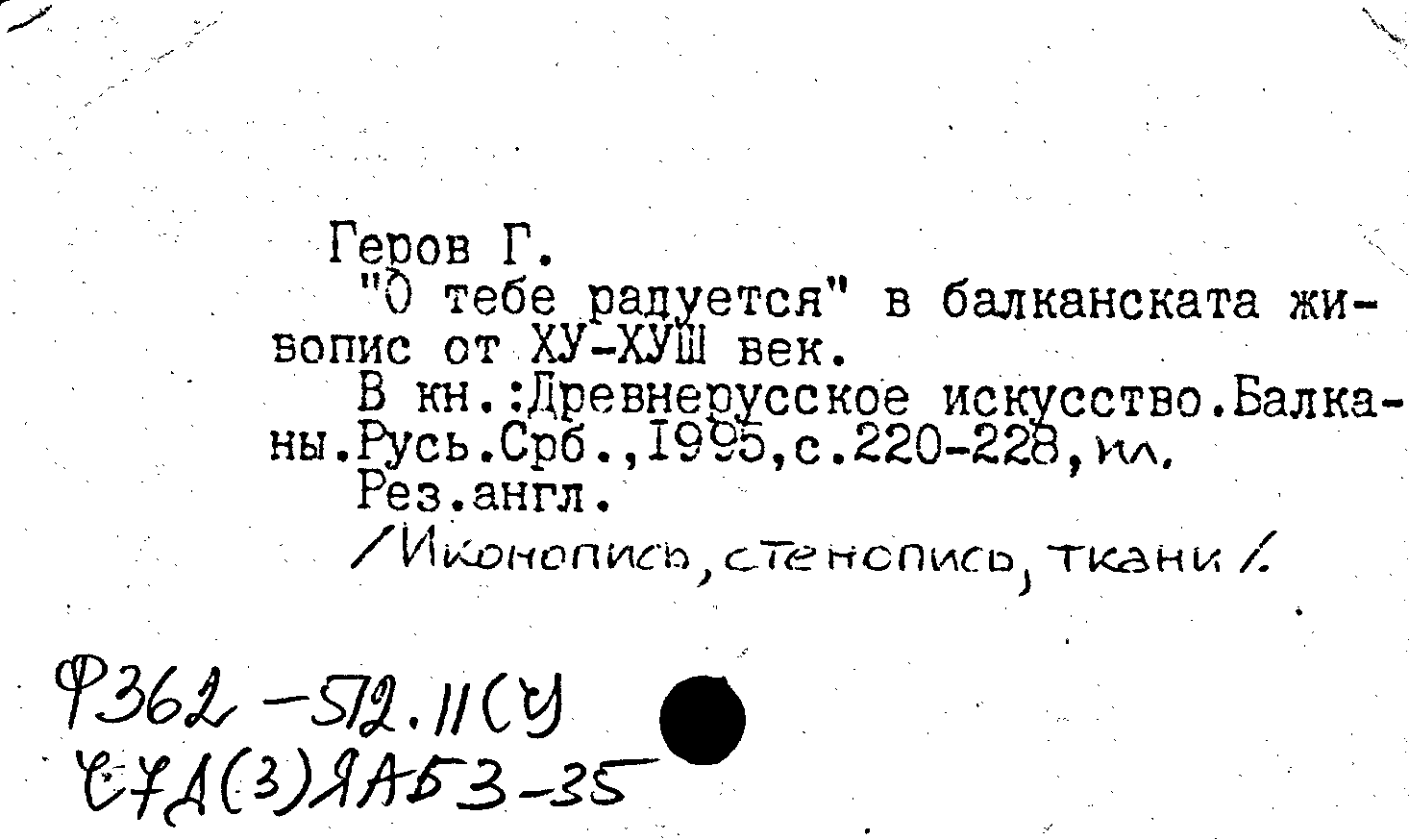 Книга (аналит. описание): "О тебе радуется" в балканската живопис от XV-XVIII век