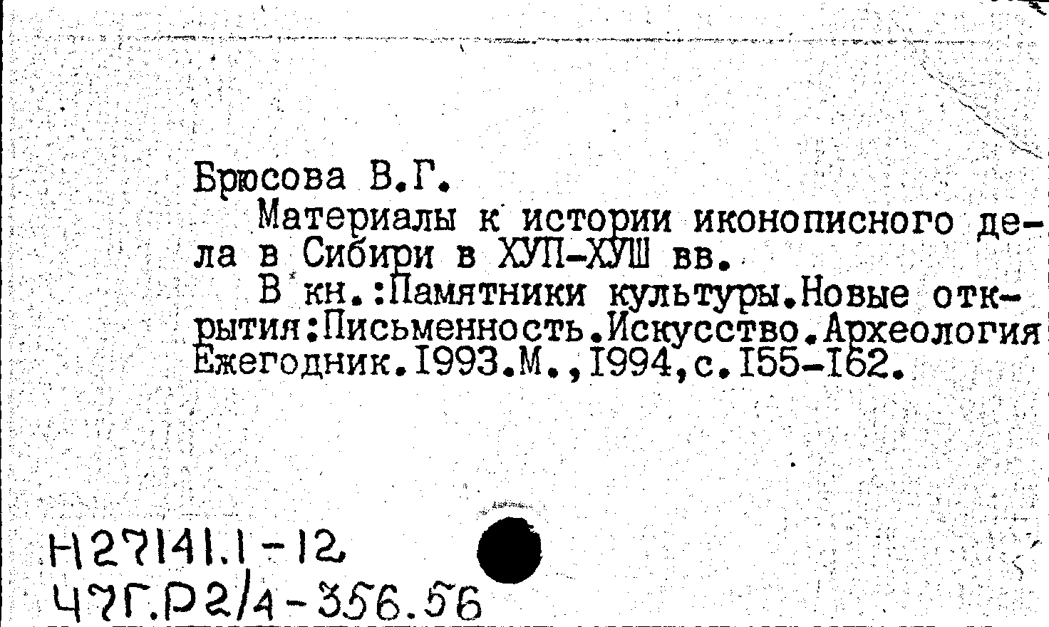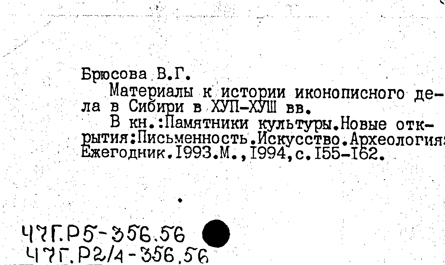 Материалы к истории иконописного дела в Сибири в XVII-XVIII вв.