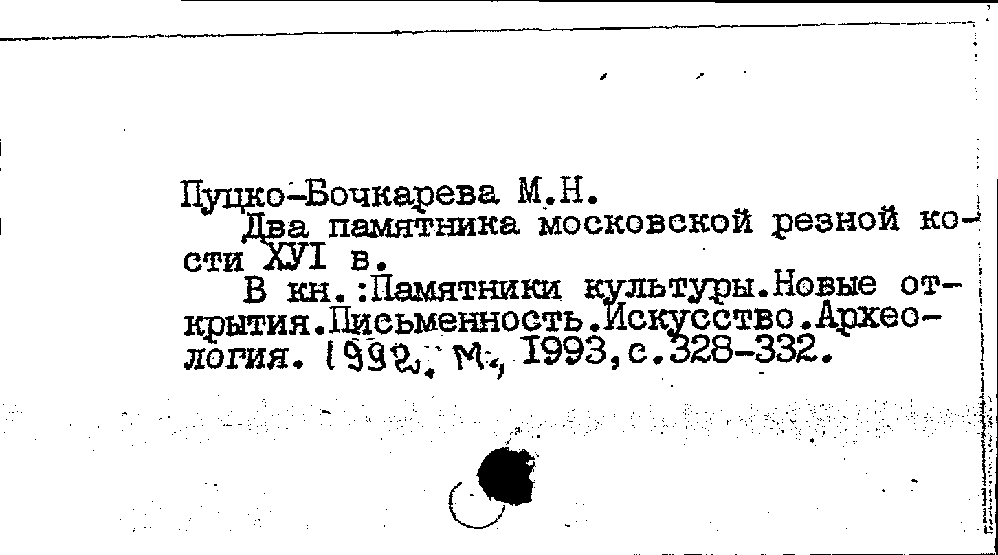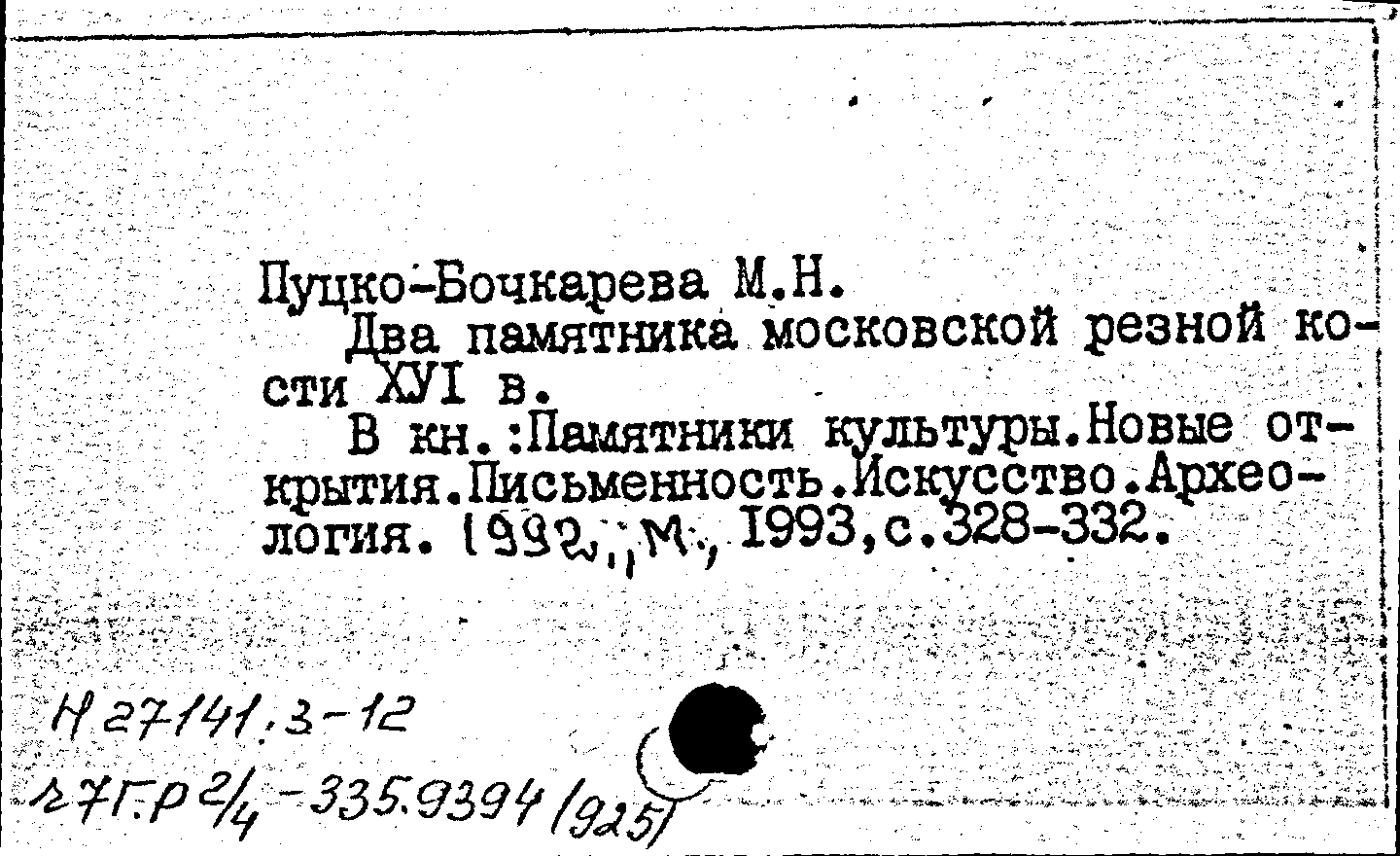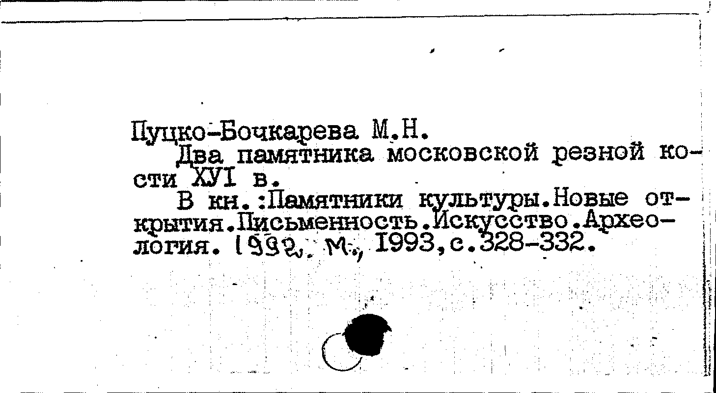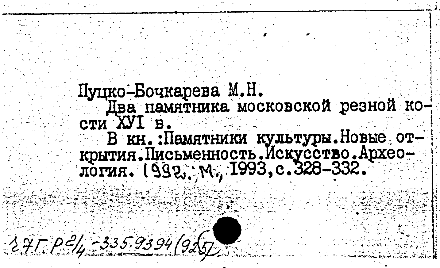 Книга (аналит. описание): Два памятника московской резной кости XVI в.
