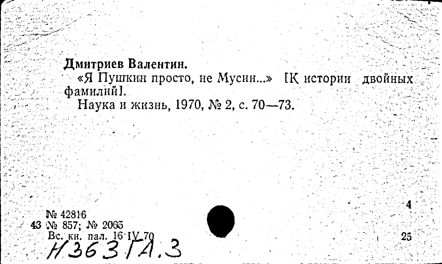Номер читательского билета