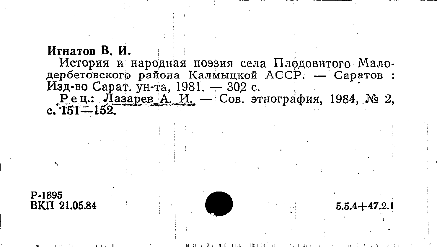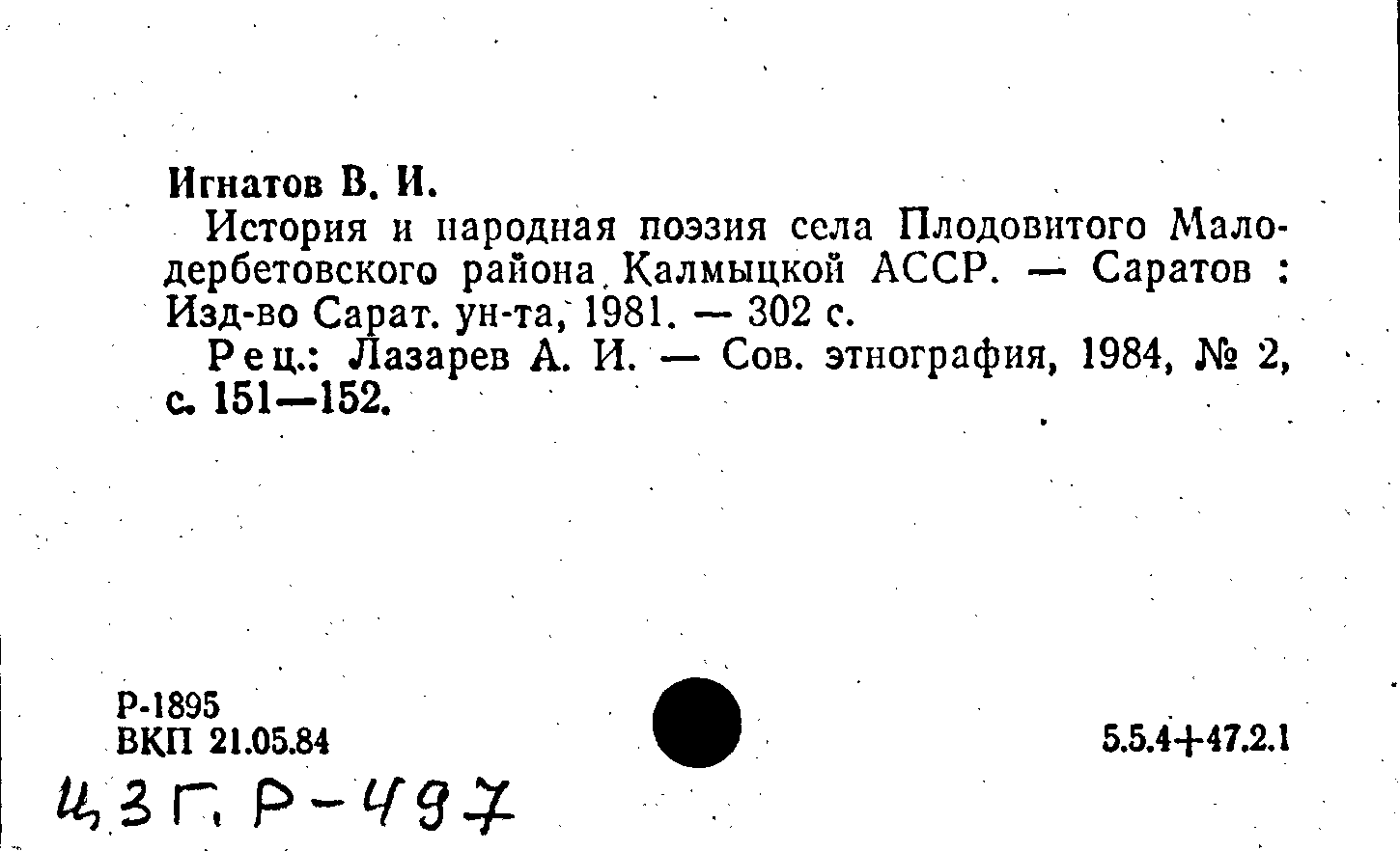 История и народная поэзия села Плодовитого Малодербетовского района Калмыцкой АССР