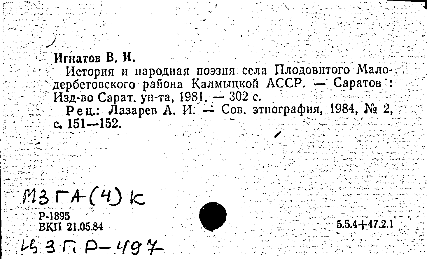 Русский фольклор \ Русский фольклор на территории республик СССР и РФ \ Калмыкия (2)
