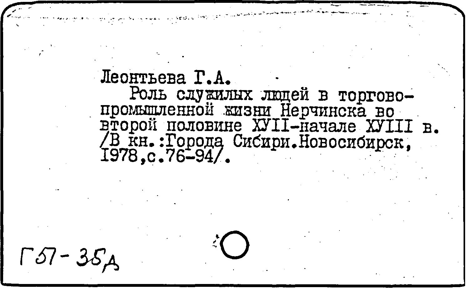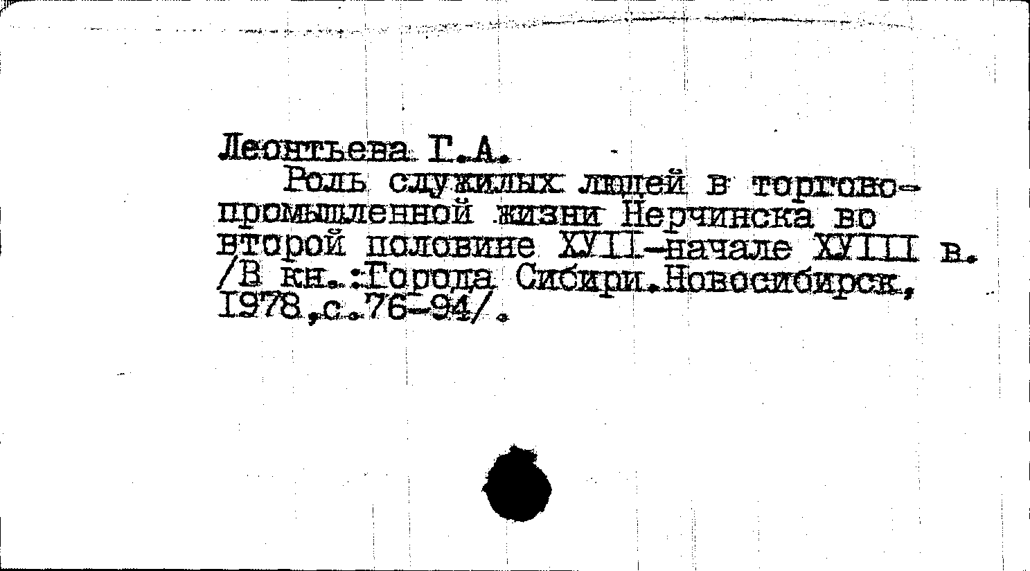 Книга (аналит. описание): Роль служилых людей в торгово - промышленной жизни Нерчинска во второй половине XVII - начале XVIII в.